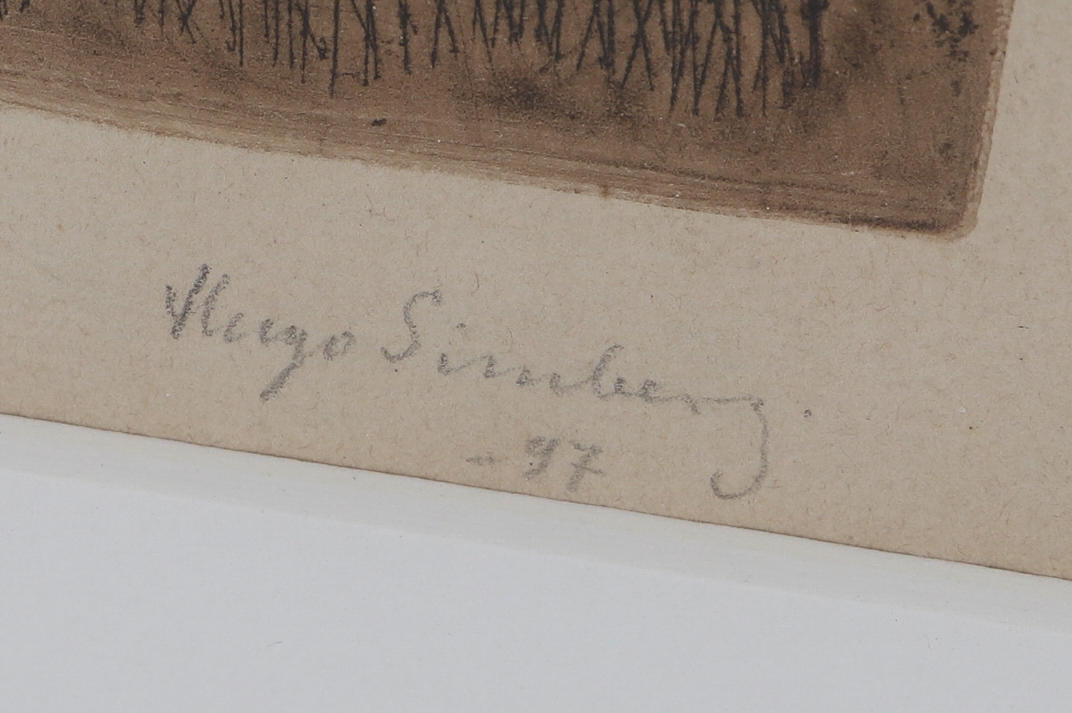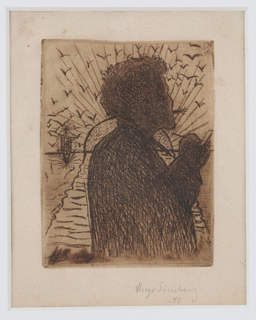 3563064. HUGO SIMBERG. Self-portrait with sketchpad, etching, signed and dated -97.