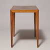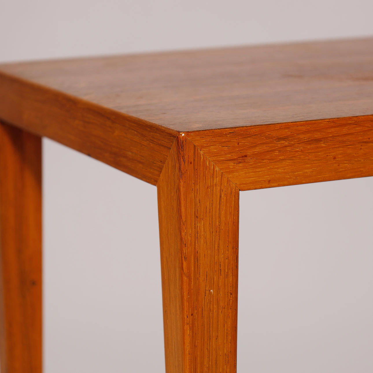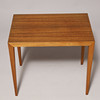 Rectangular side table in veneered teak with four-sided tapered legs. H. 52, L. 57 B.37 cm.