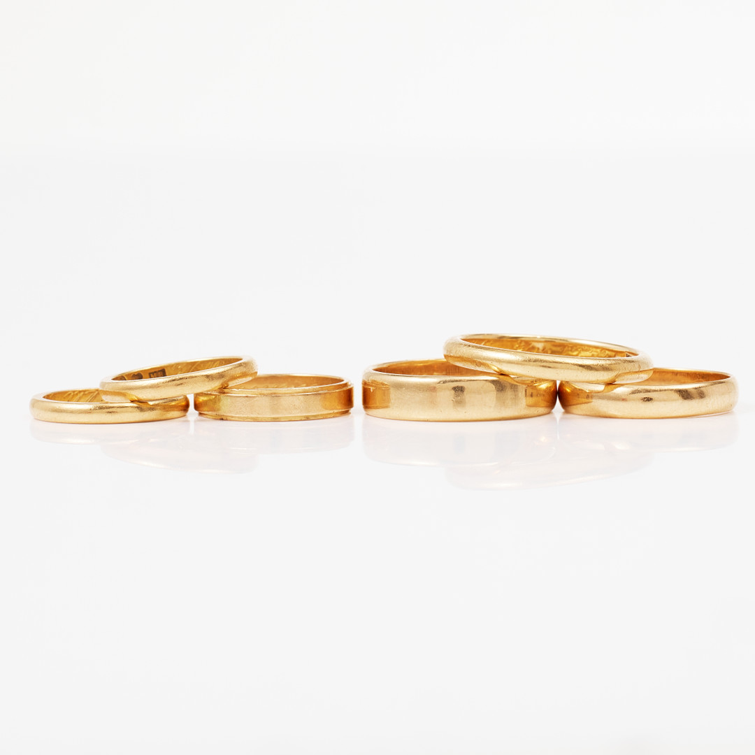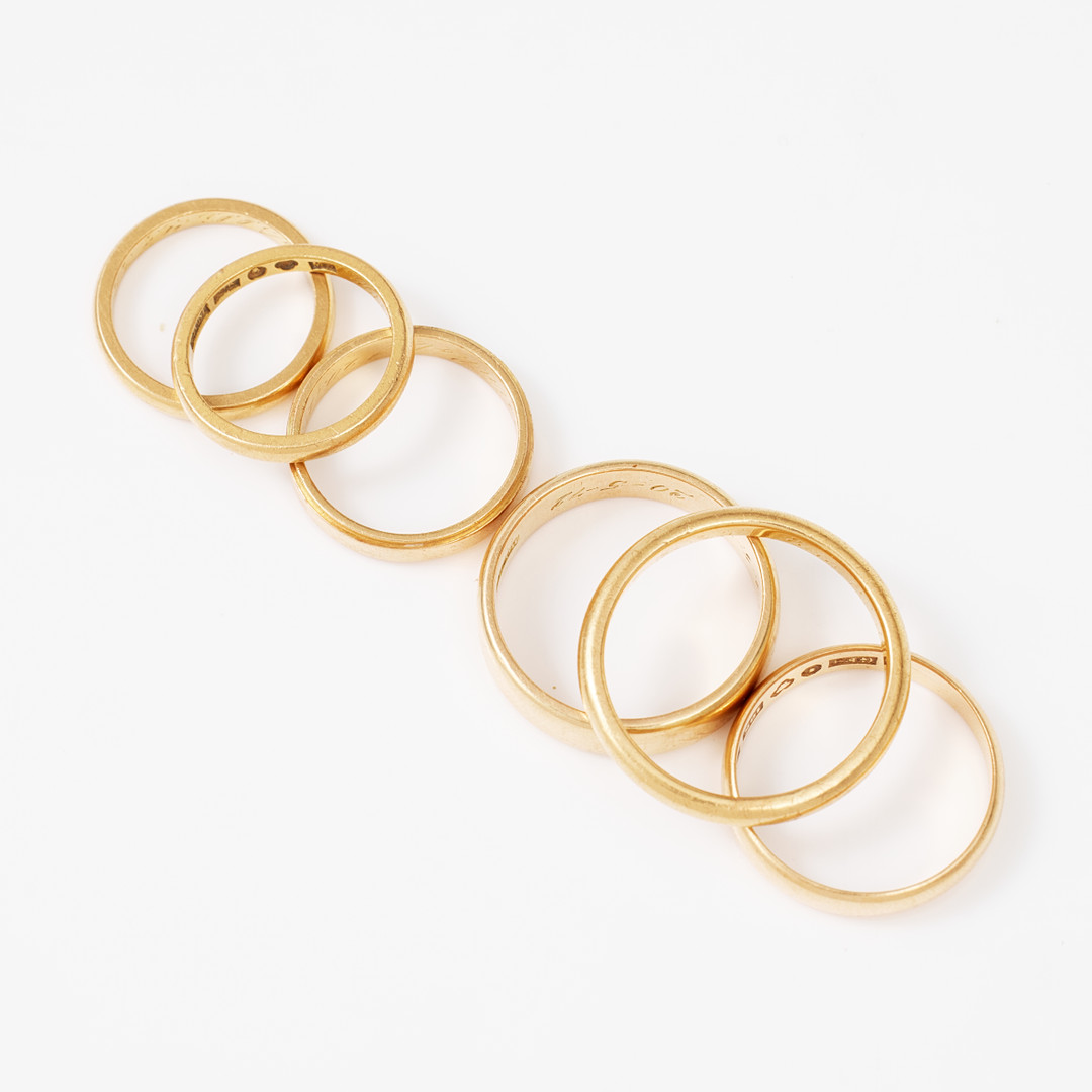 3568277. WEDDING RINGS, 4+2 pcs., 18 and 20 k gold.