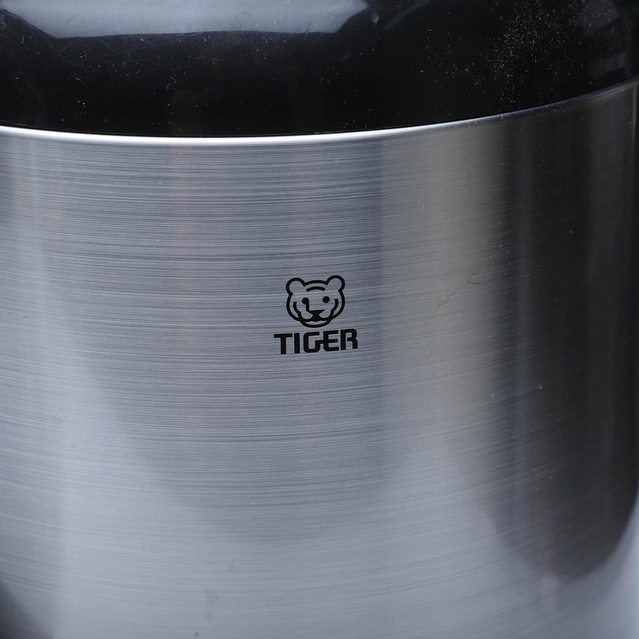 Thermos container Tiger, holds 9.5 liters, foldable legs, black/steel