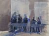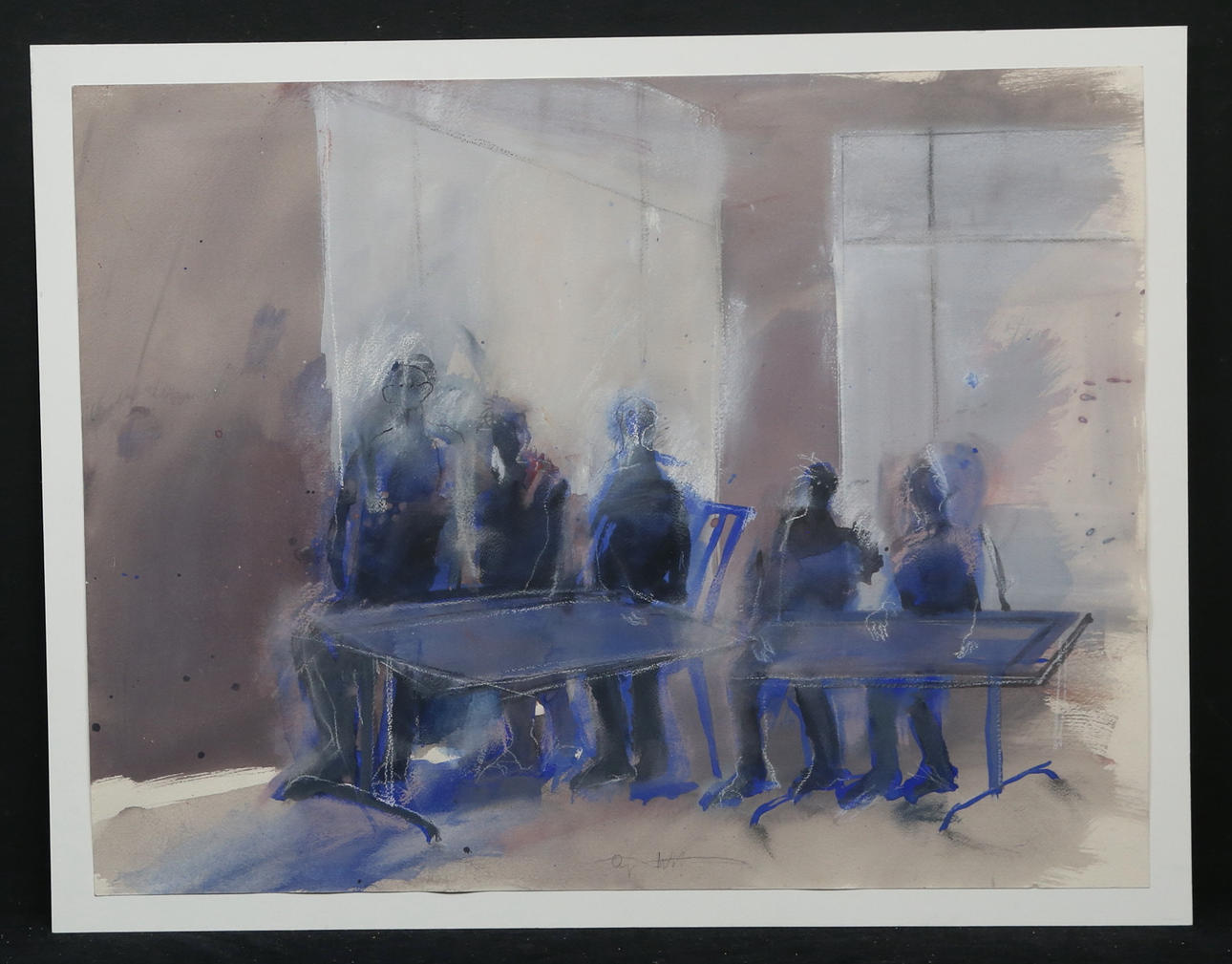 ÖRJAN WIKSTRÖM. Cafe interior. Mixed media, signed Örjan Wikström.
