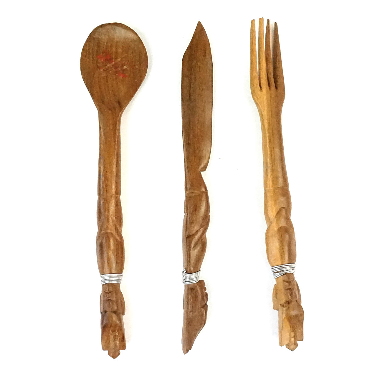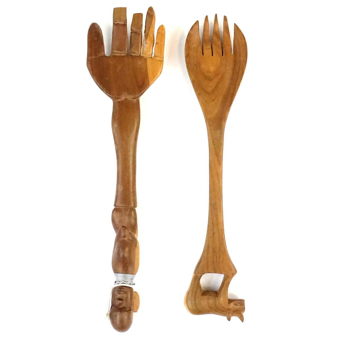 2 pairs of salad cutlery decorated with animals, length approx. 29-32 cm, 3pcs cutlery fork, spoon, knife, length approx. 24 cm.