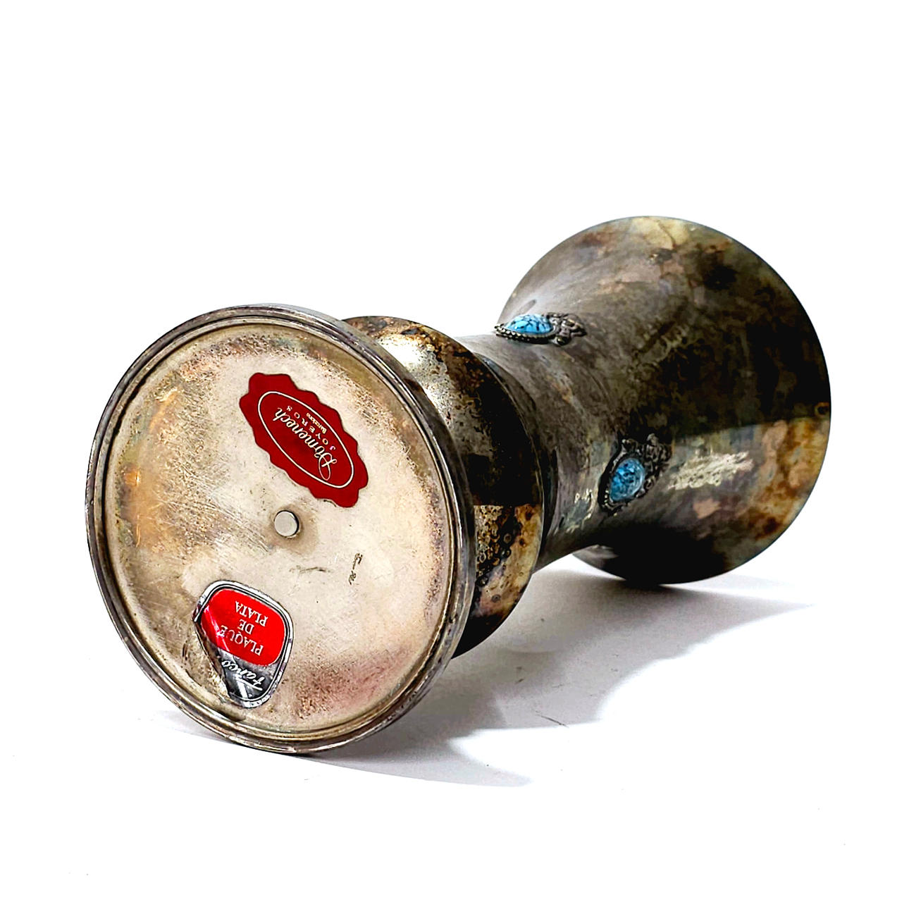3577099. SILVER ALPACA VASE WITH TURQUOISE CABOCHON APPLICATIONS.