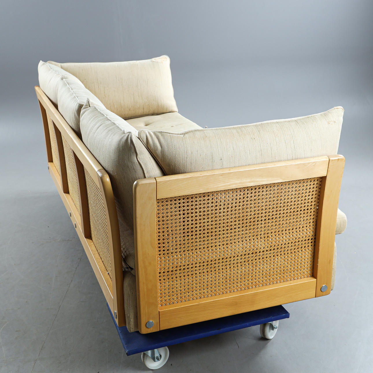 Frame in beech with rattan, fabric upholstery, loose plush dimensions, height approx. 62, length 208 cm, seat height 40 cm.