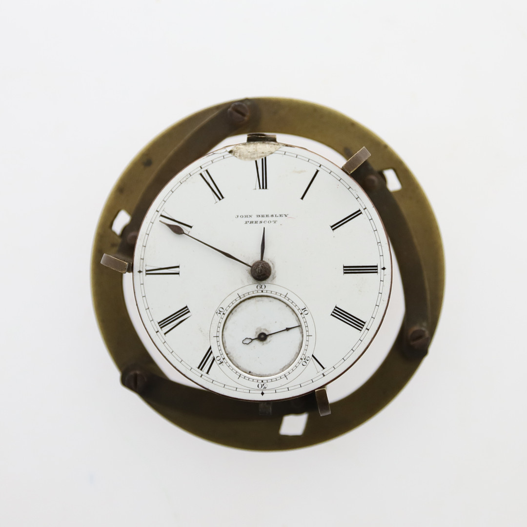 3582907. JOHN BEESLEY, PRESCOT: A POCKET WATCH MOVEMENT.
