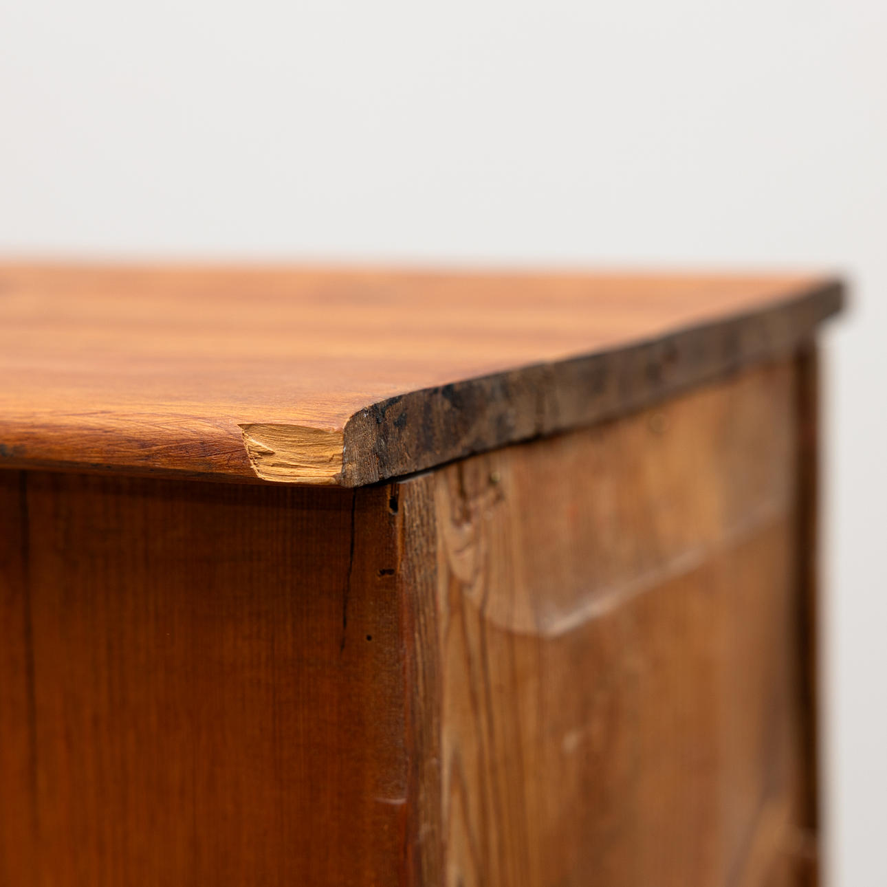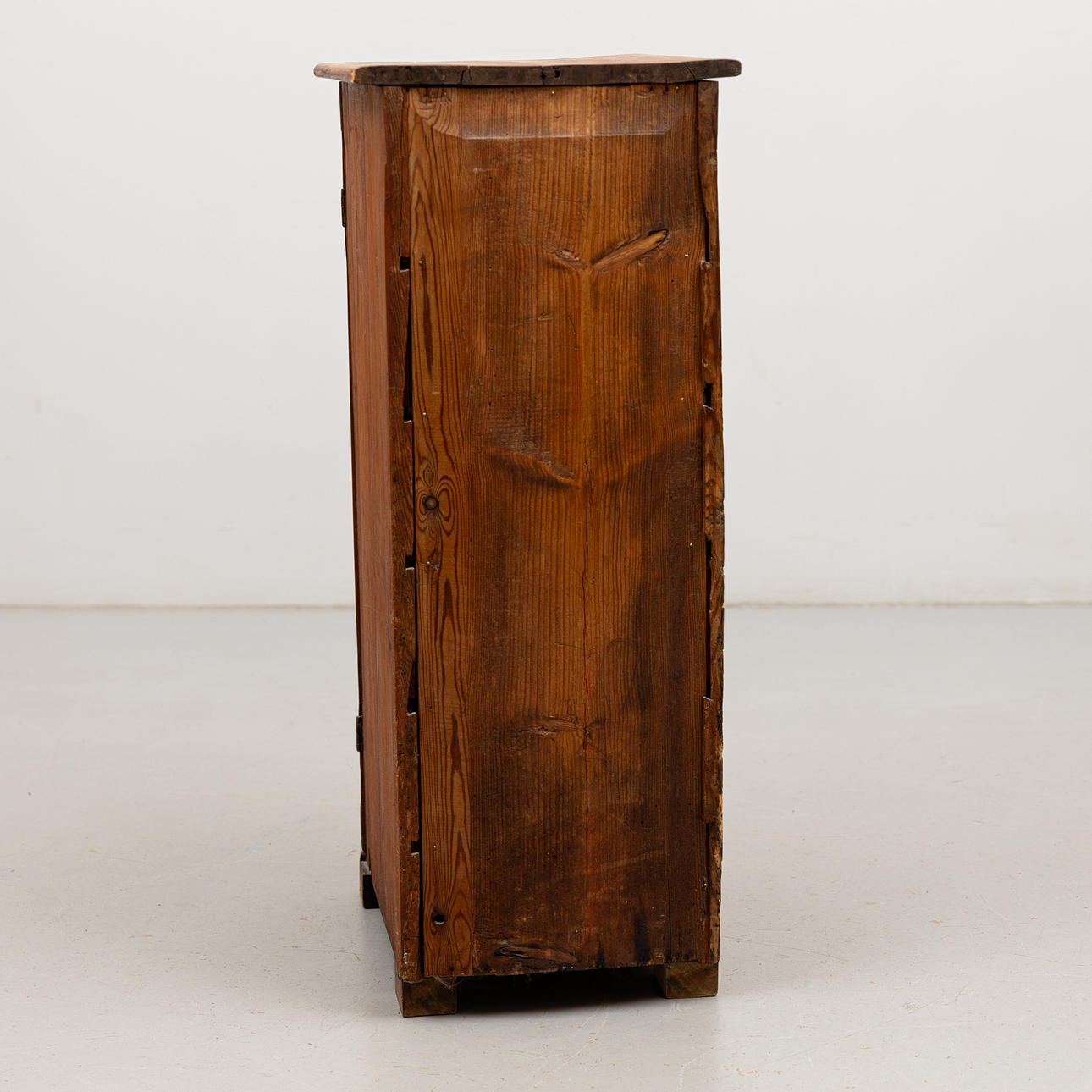Age-related wear and tear, damage. Three of the boxes later. Slice slightly beaten. Later magnet for door. Partly worm tongue.