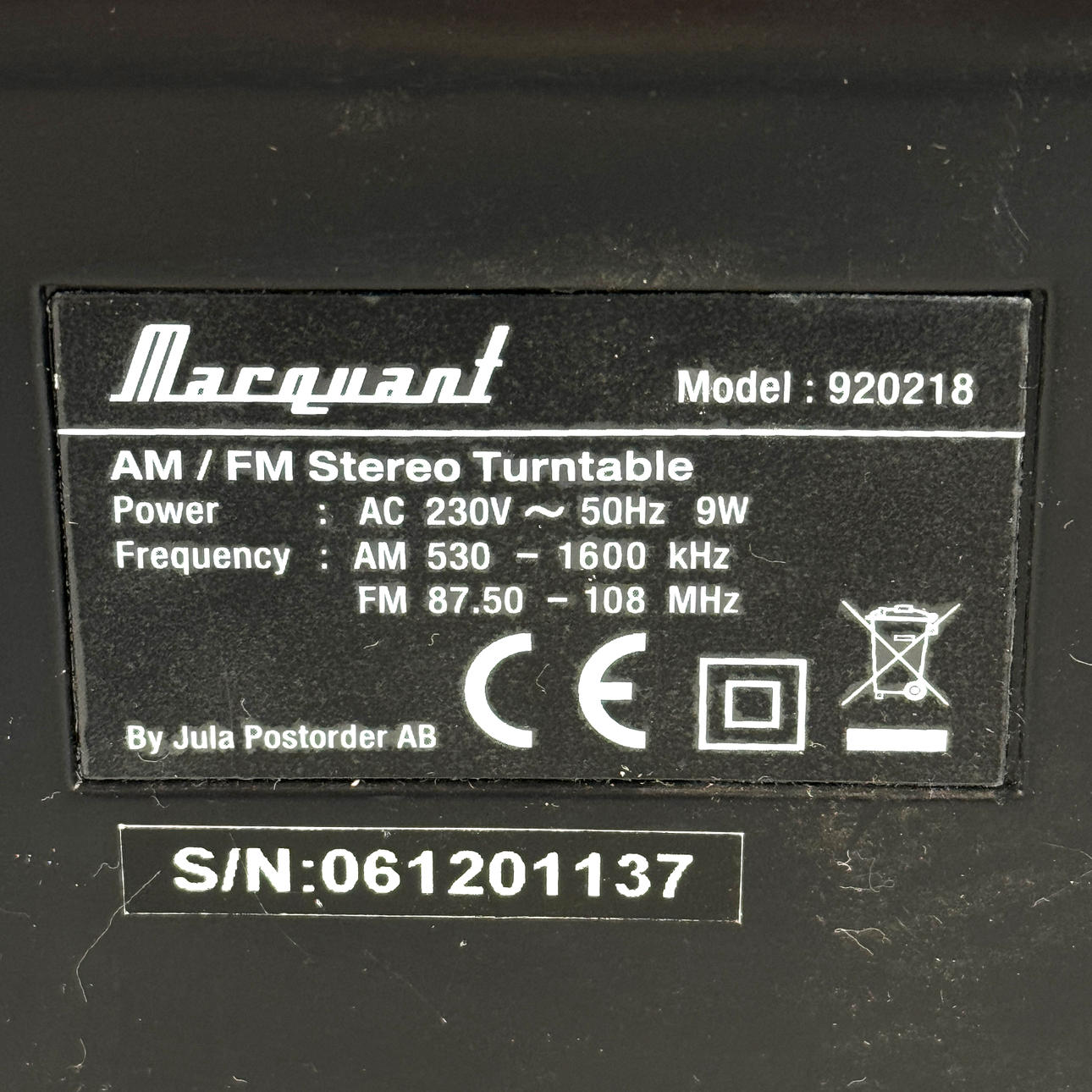 3597485. TURNTABLE with radio, plastic/metal, Marquant, Jula.