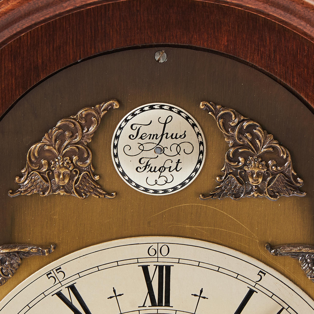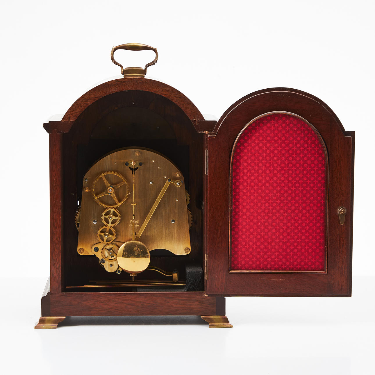In mahogany, dial with the text “Tempus fugit”, marked “An Elliott clock”, dimensions approx. 36,23x16cm