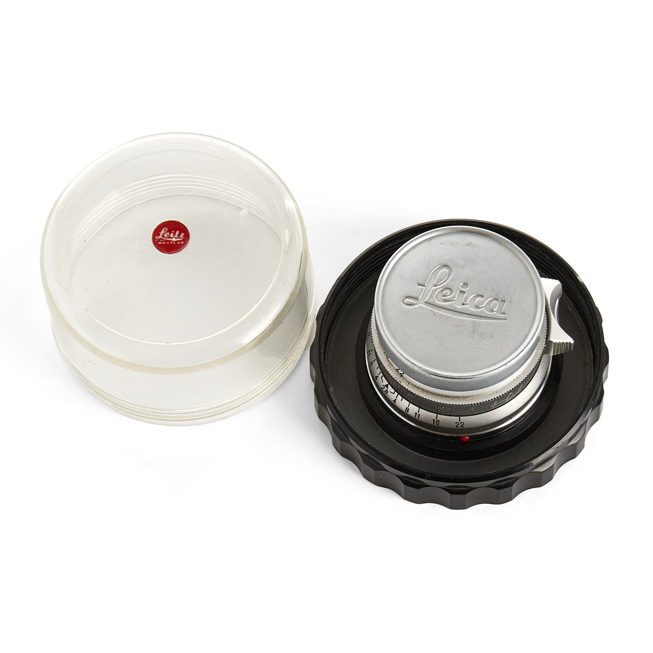 Both lenses with original Leica protective cases and lens caps.