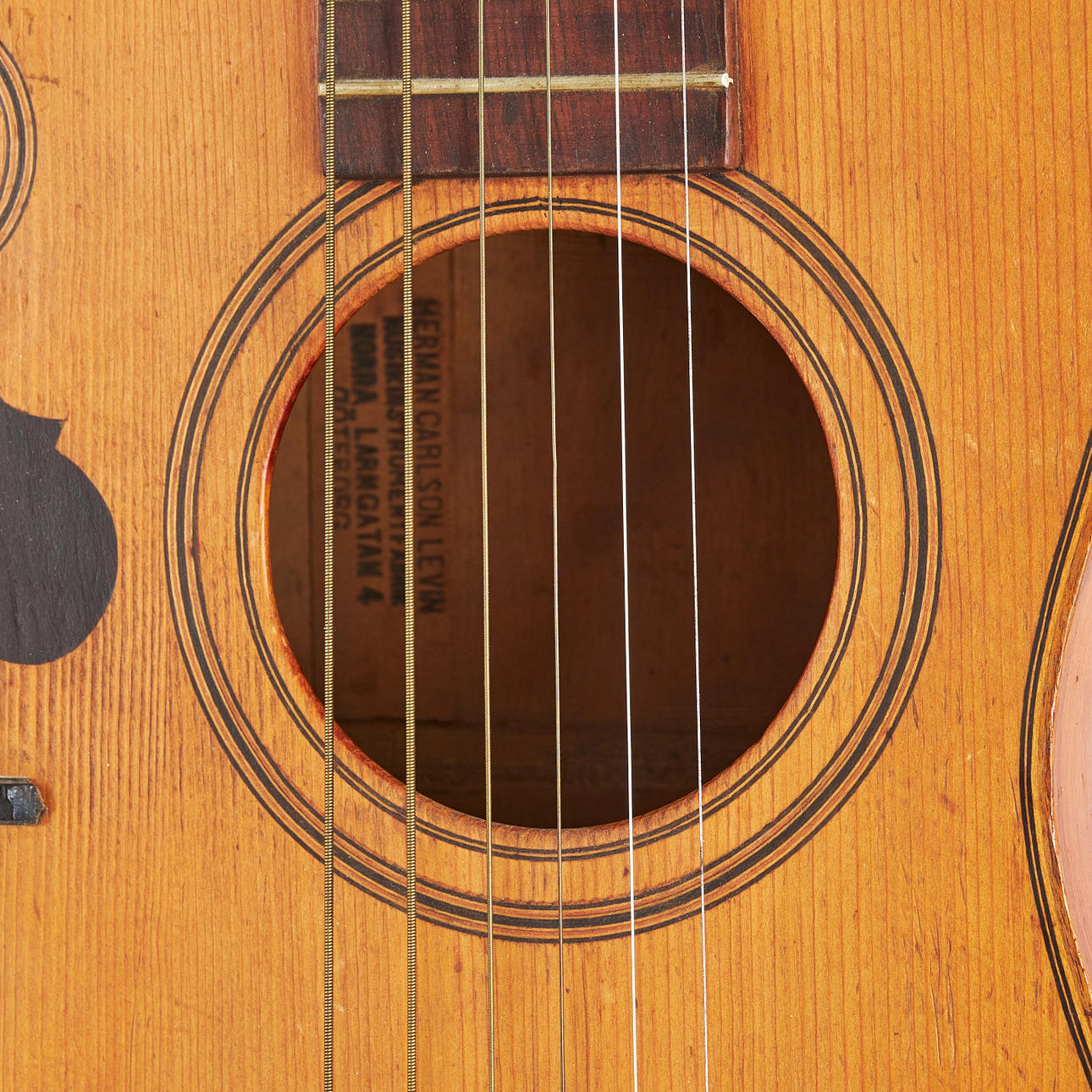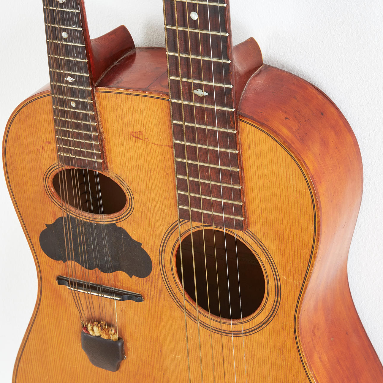 3603425. LEVIN, “Mandolinguitarr”, approx. 1914, instrument with 12-string mandolin neck and 6-string guitar neck, instrument patented by Herman Carlsson Levin, top in spruce, sarg and back in maple, made in Gothenburg soft case included.