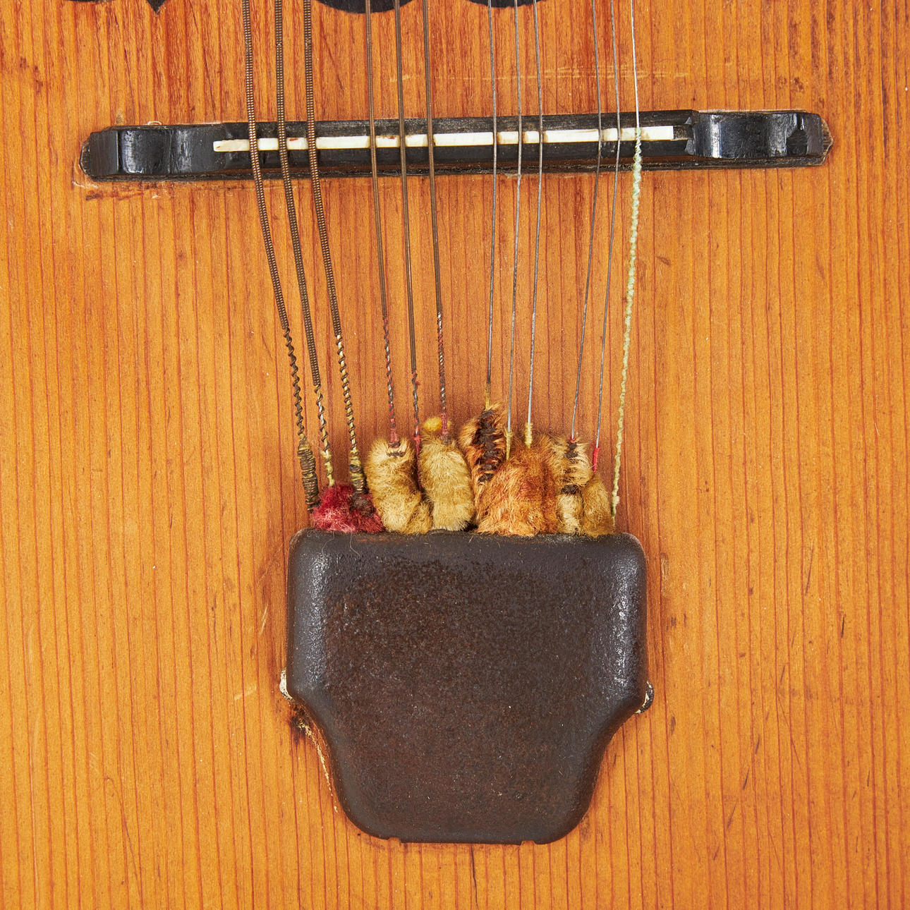 LEVIN, “Mandolinguitarr”, approx. 1914, instrument with 12-string mandolin neck and 6-string guitar neck, instrument patented by Herman Carlsson Levin, top in spruce, sarg and back in maple, made in Gothenburg soft case included.