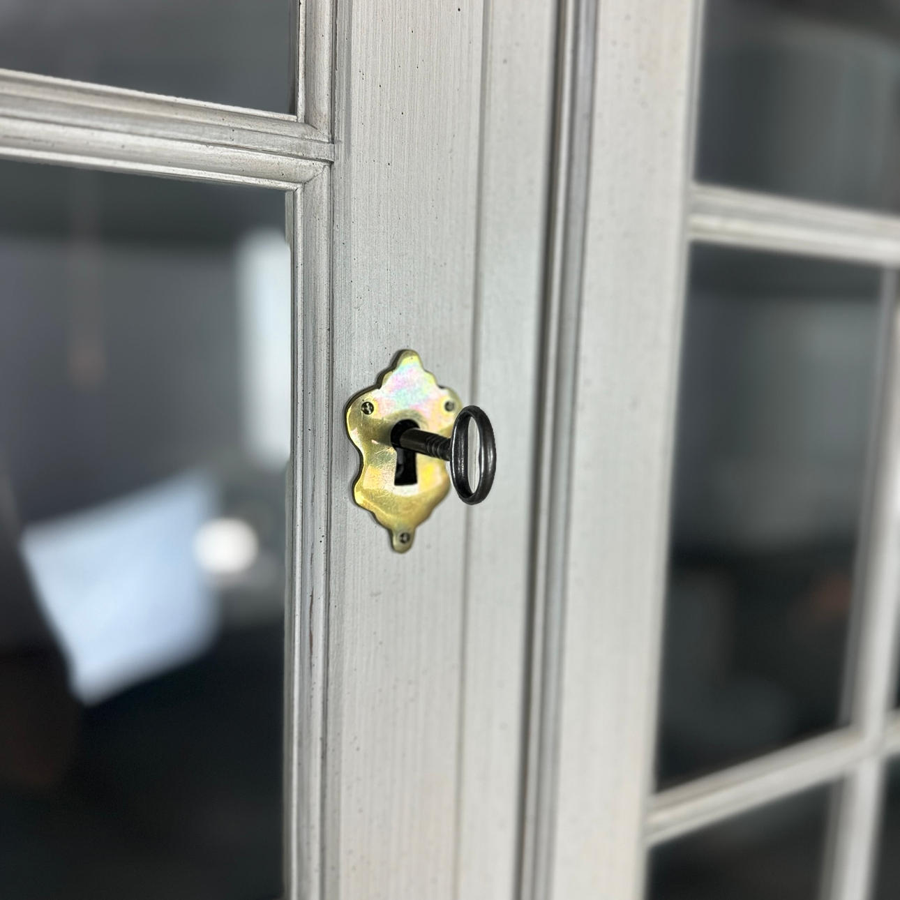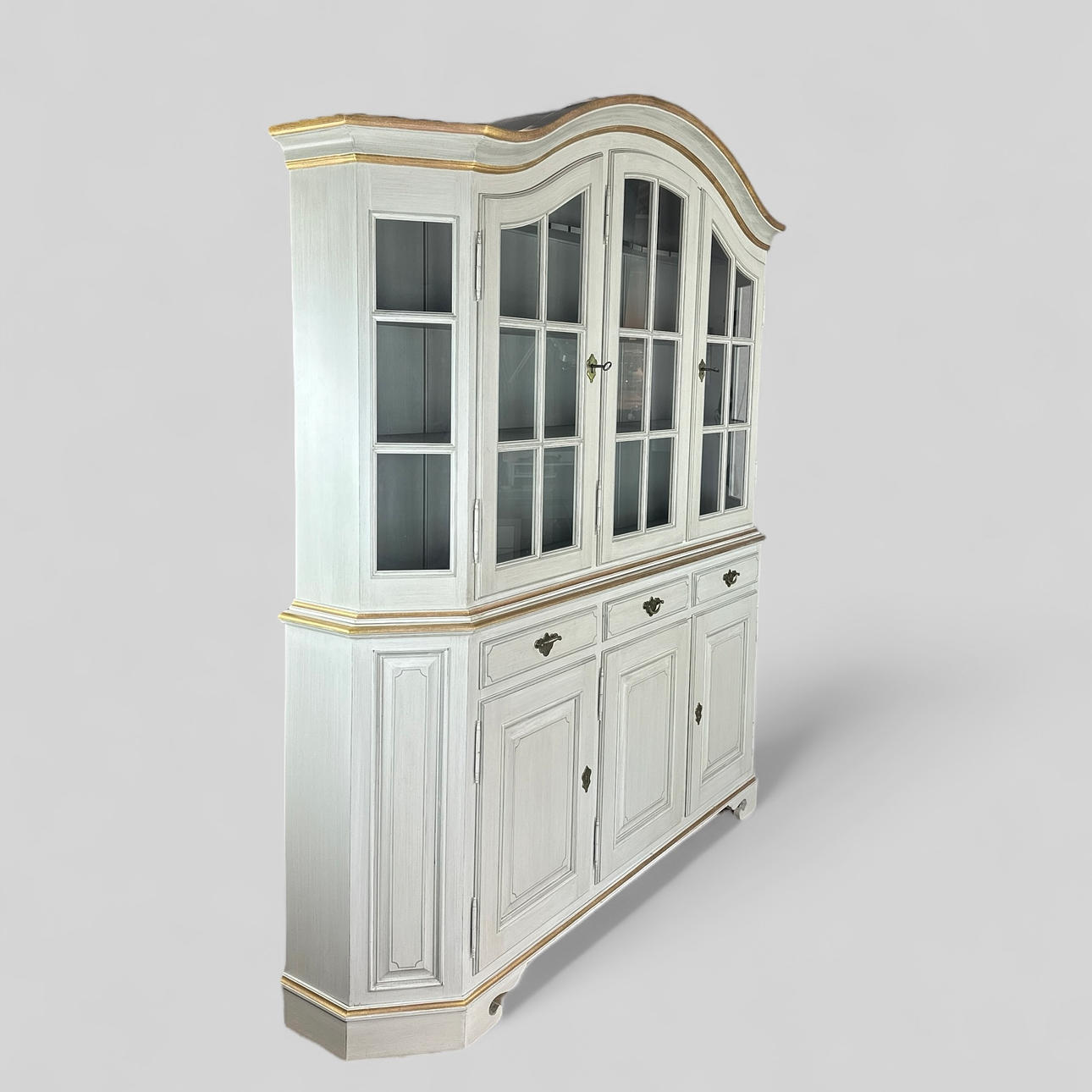 DINING ROOM CABINET with VITRIN, “Sofiero”, divisible, grey with gold decor, Rococo style, KA Roos, Helsingborg, late 20th century.