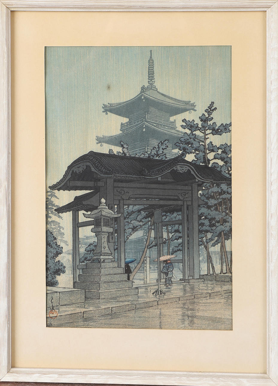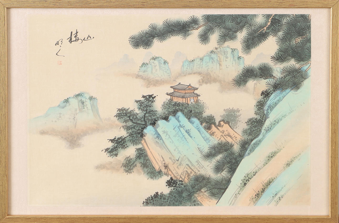 OIDENTIFIERAD KONSTNÄR. Landscape buildings, 2 pieces, Asian, mixed technology, signed with Asian characters.