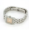 A Woman's stainless steel Longines wristwatch set with diamonds and with square pink dial.