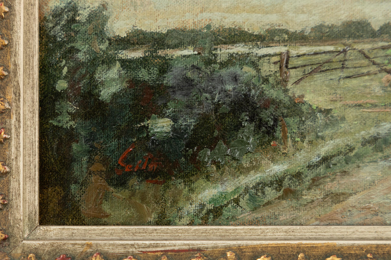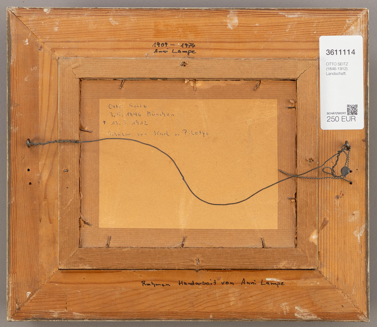 Otto Seitz (1846-1912), landscape, oil on canvas, placed on cardboard, signed in red at the bottom left, ca. 15.5 x 20 cm, with frame approx. 29 x 34 cm.