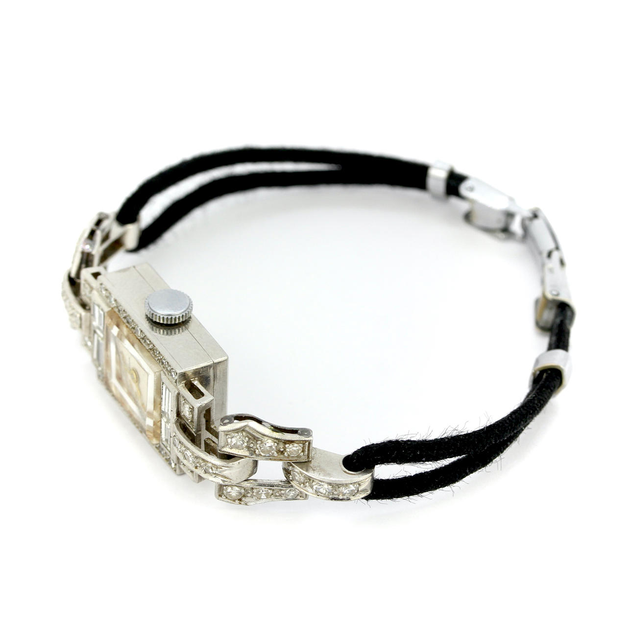 An Art Deco diamond manual wind cocktail watch by Croton.