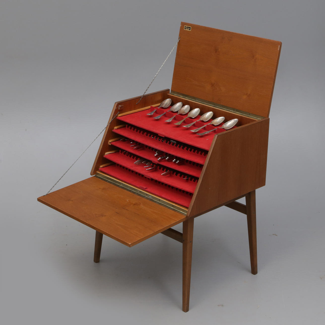 CUTLERY CABINET, with silver cutlery, teak.