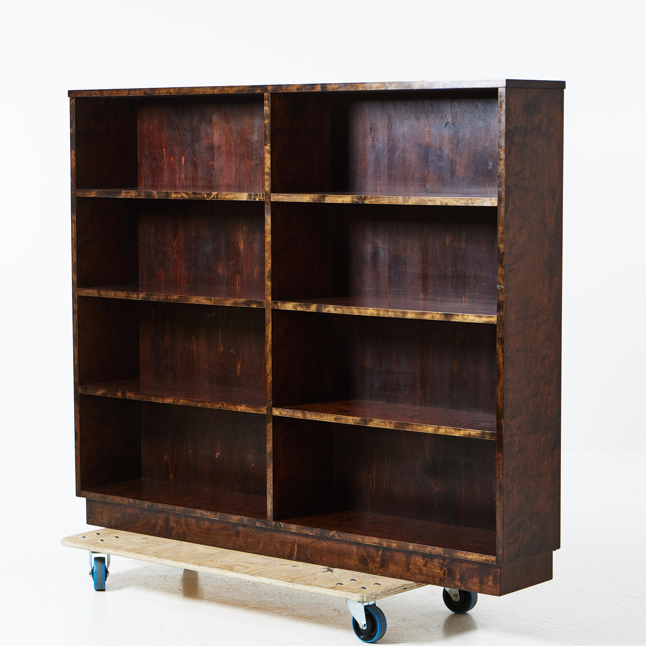 A 1930s funky bookcase, dark stained birch.