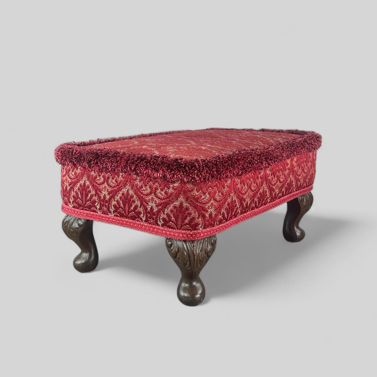 FOOTSTOOL, upholstered with red fabric, Sherborne.