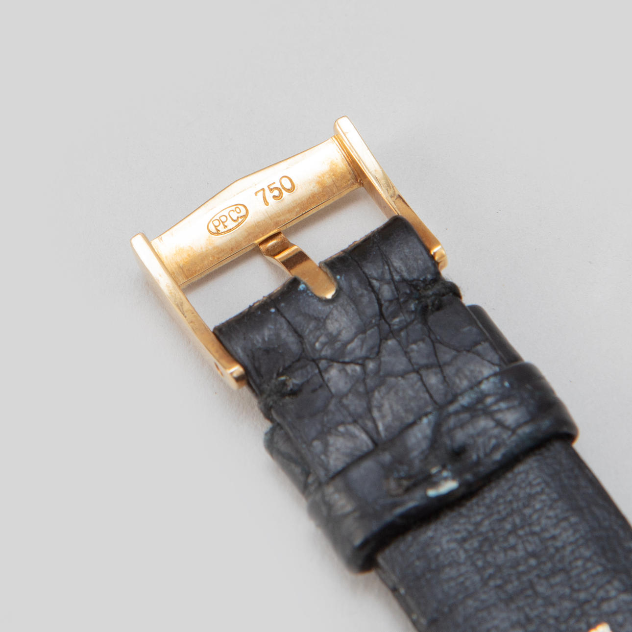 Black leather strap with clasp in 18k