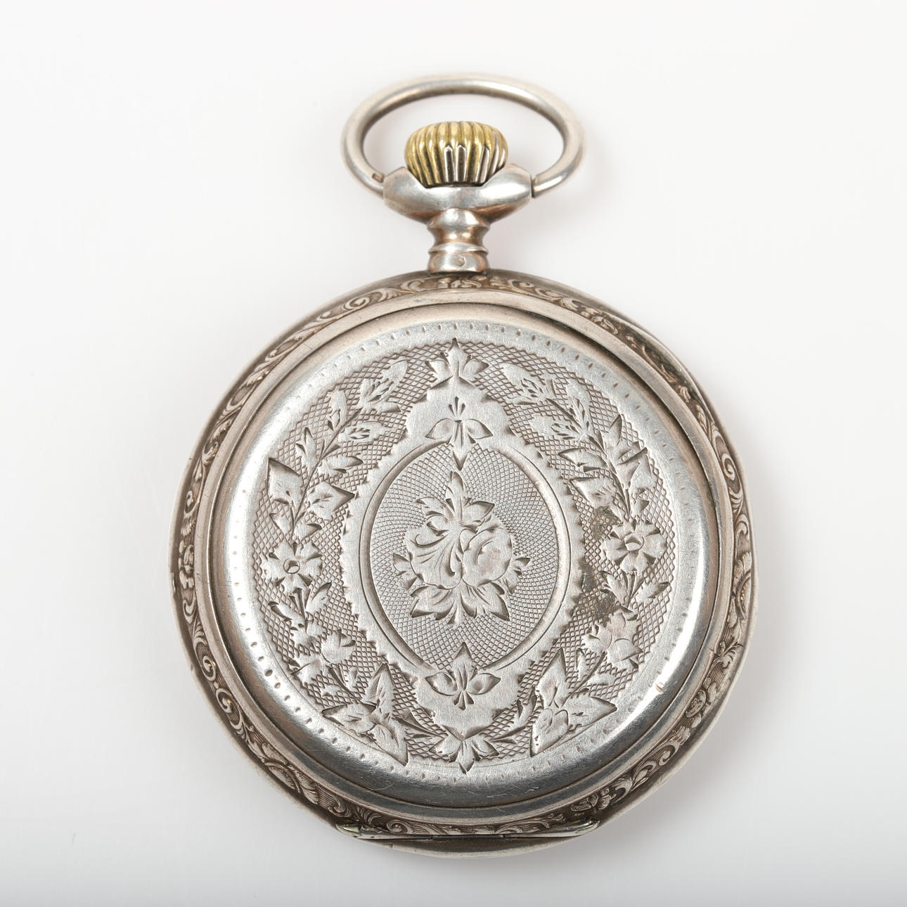 3623868. POCKET WATCH, silver with decorative painted dial, Carl Meyer.
