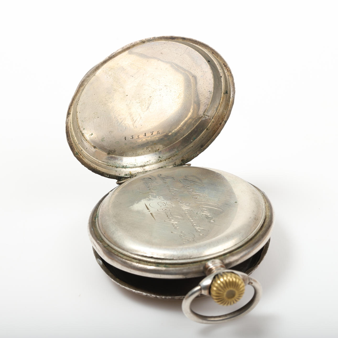 POCKET WATCH, silver with decorative painted dial, Carl Meyer.