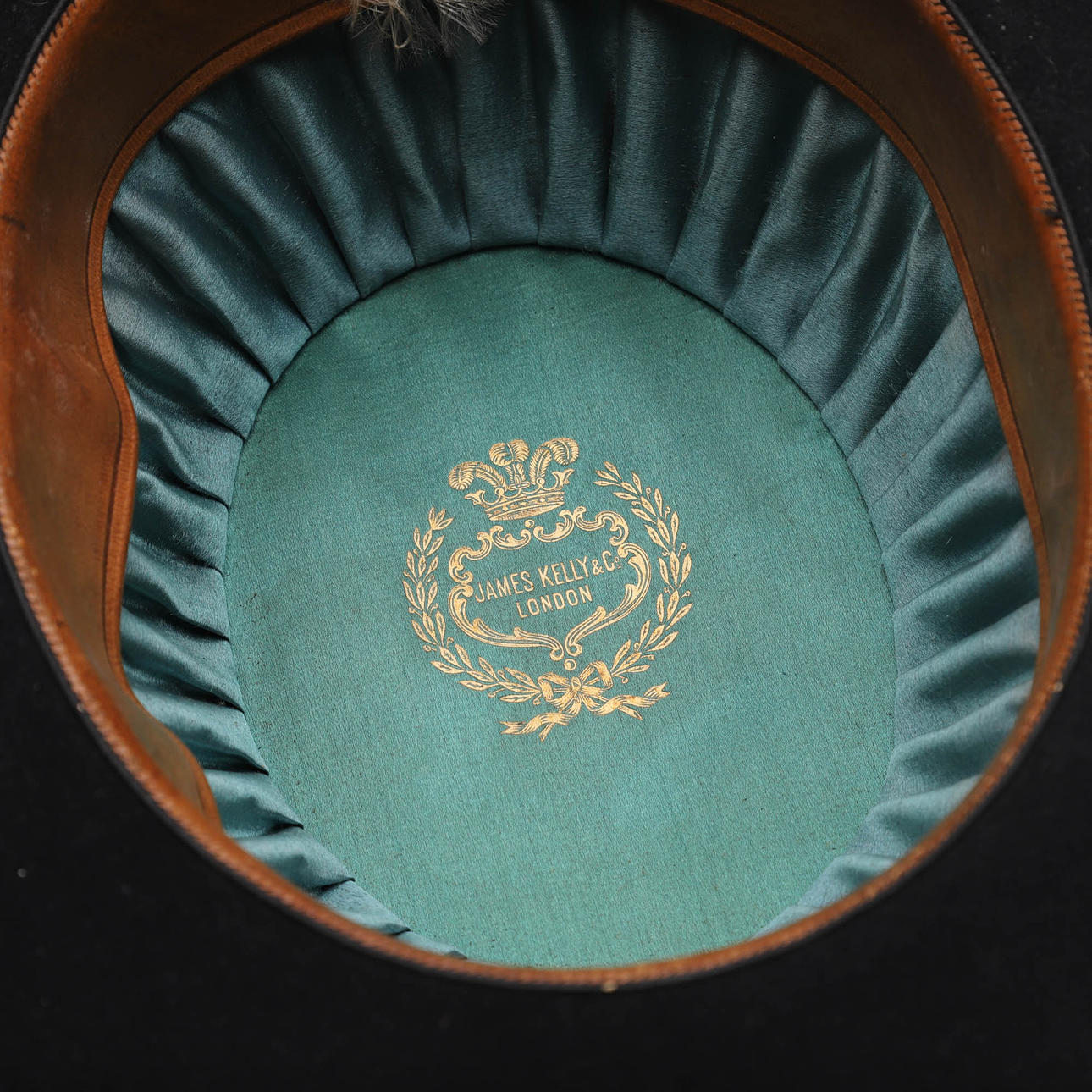 Initials written in ink on sweat strap, minor wear and tear.