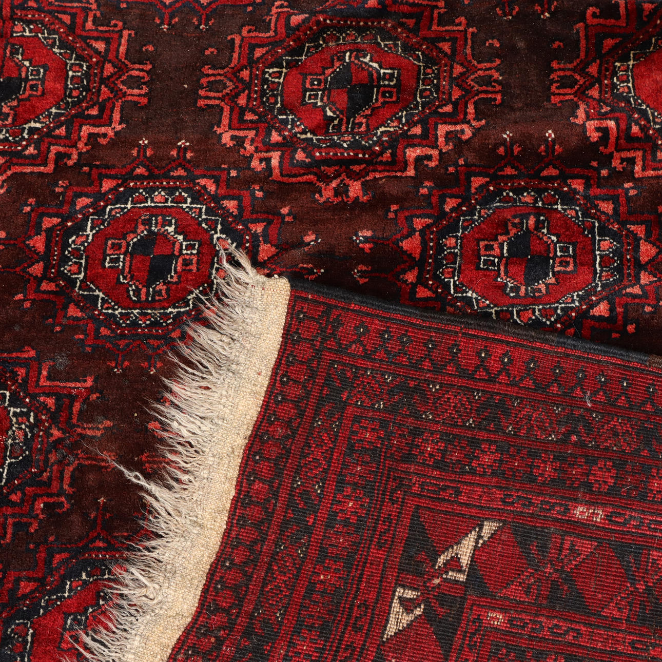 A hand-knotted Afghan rug.