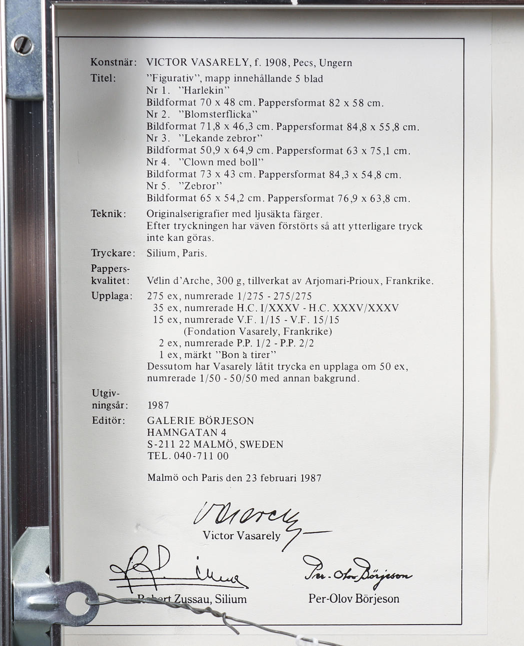Silkscreen in colour on archespaper, signed and numbered 178/275. Edited by Galerie Börjesson, Malmö, 1987.