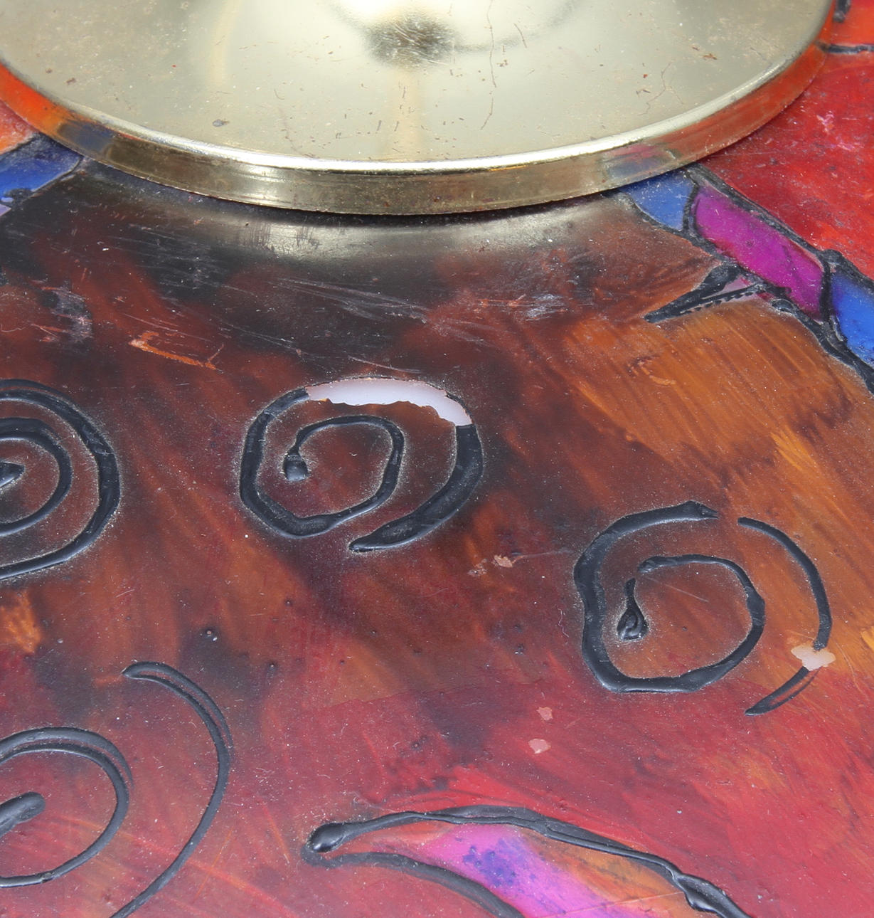 Wear, marks, scratches. Chips. Fårgborfall.
