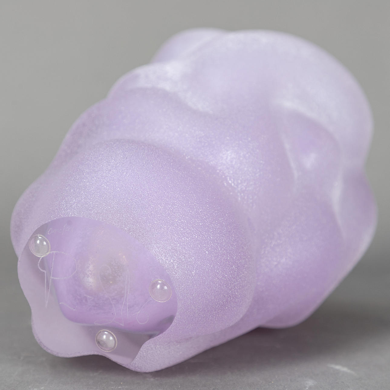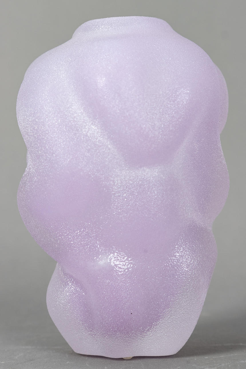 Organoic shaped glass vase in pale lilac color, signed “Orrefors 9750.61 Per B. Sundberg”.