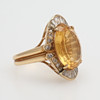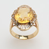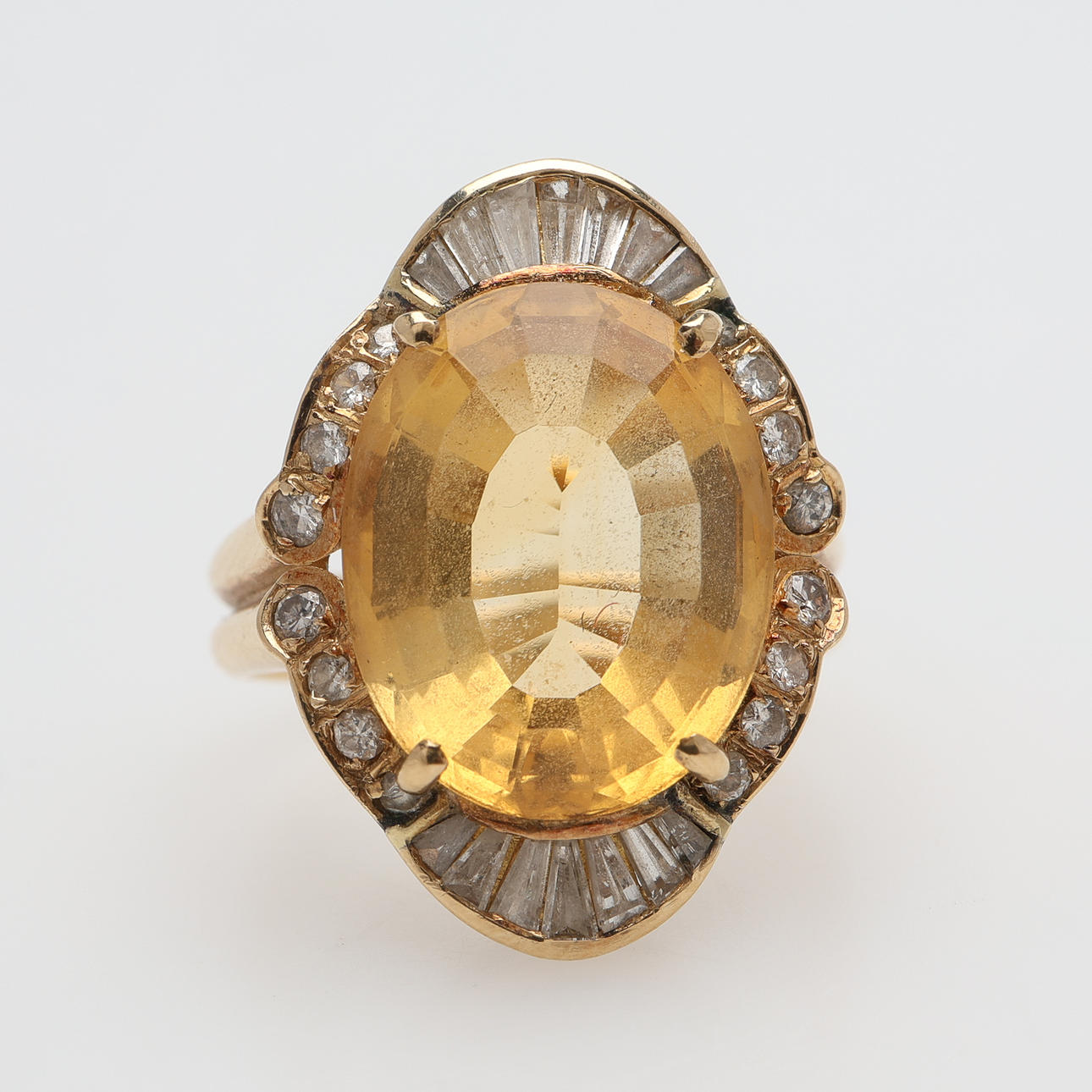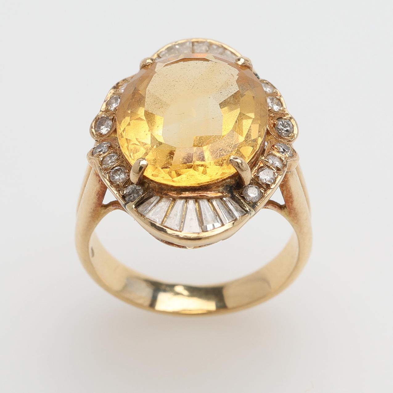 Ring, 18K, citrine approx. 15 x 10 mm, brilliant cut diamonds and baguettes approx 0,60 ct, total weight 8,1 g. Ring size approx 17,25.