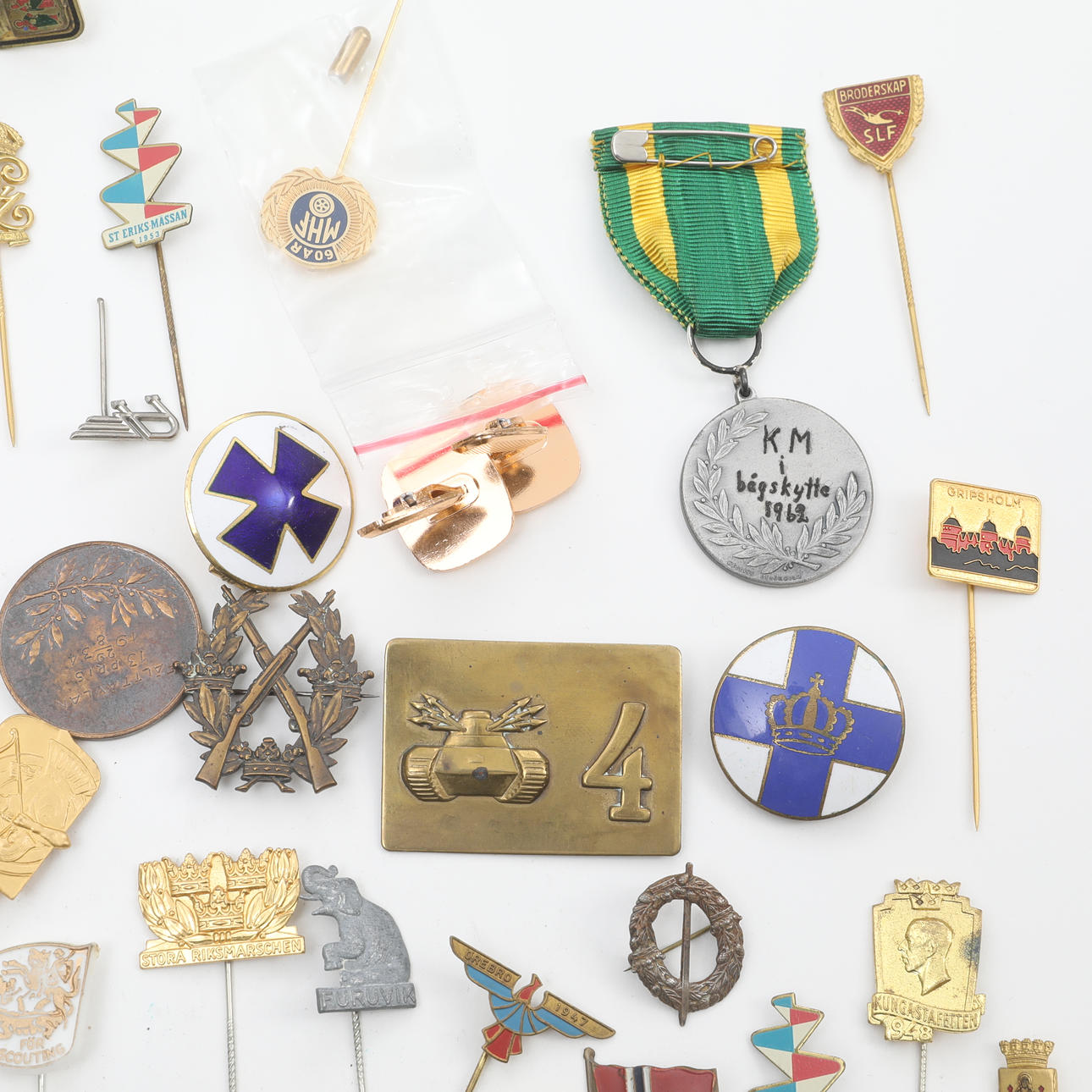 MEDALS, PINS, BADGES, LOT.