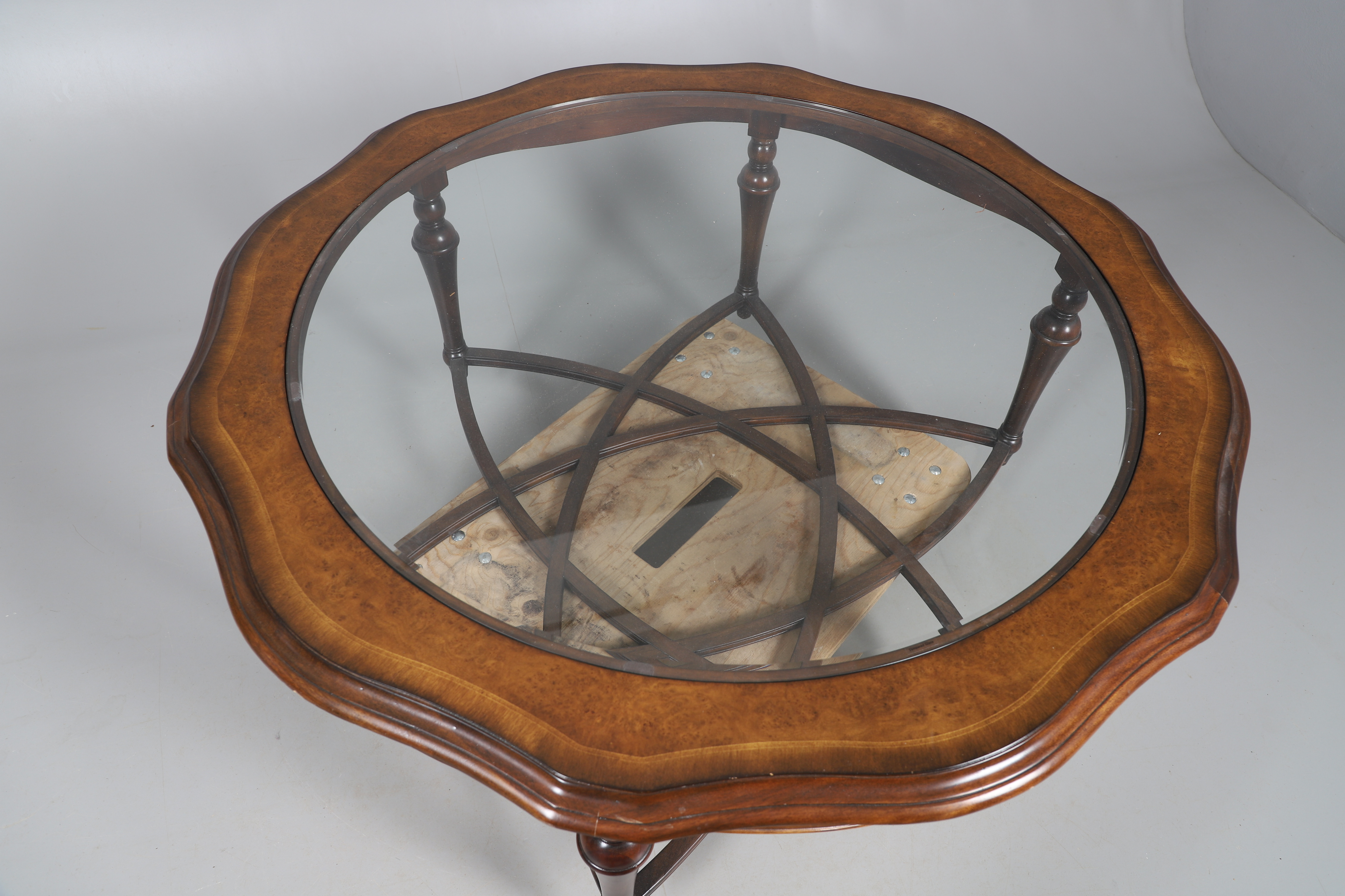 3638310. A MODERN INLAID BURR WALNUT EFFECT CENTRE LOW TABLE.