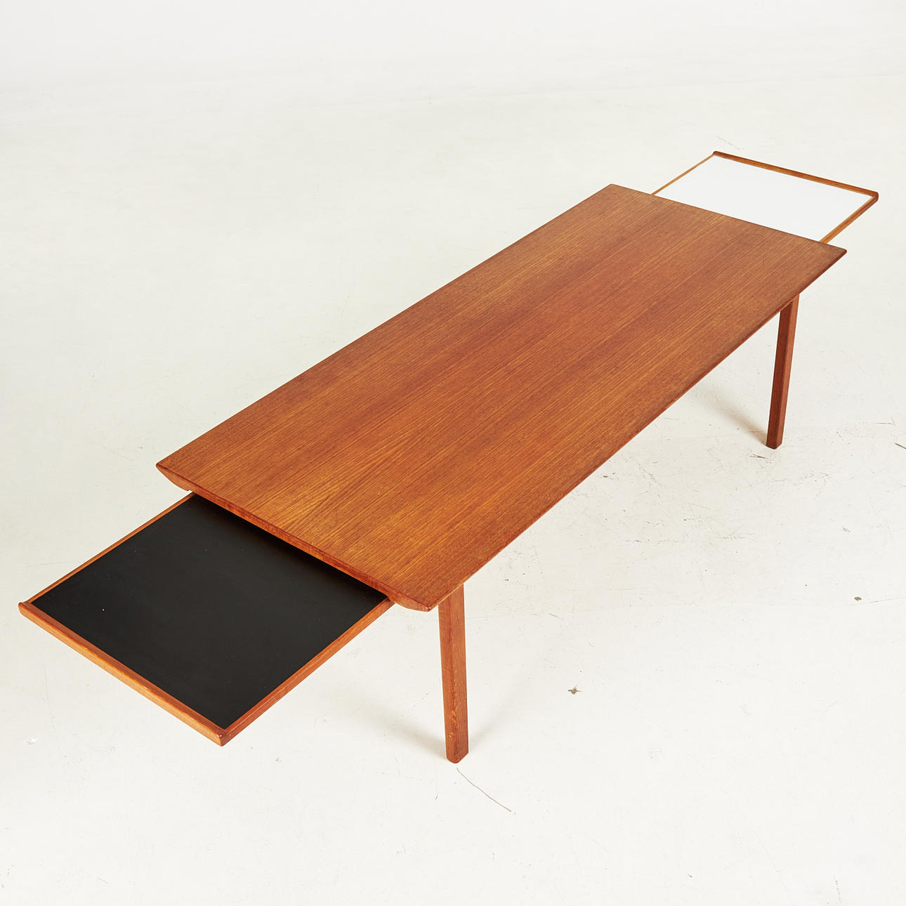 3638710. COFFEE TABLE. 1960s, teak, with extendable discs.