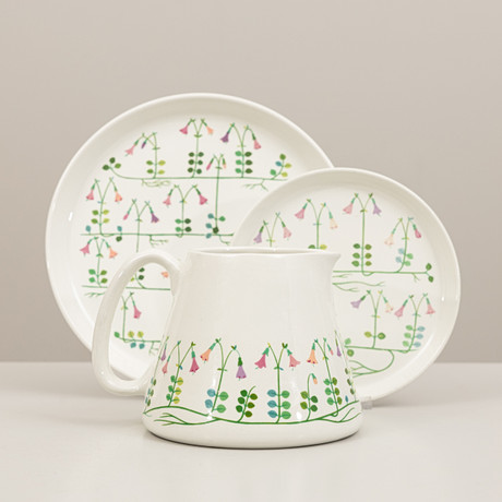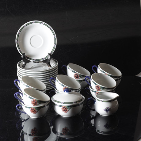 Centaurea- Cornflower, 6 coffee cups with saucer, 6 servings Linnea Borealis 6 mocca cups with saucer, 5 mini saucers, cream cup, sugar bowl and lid.