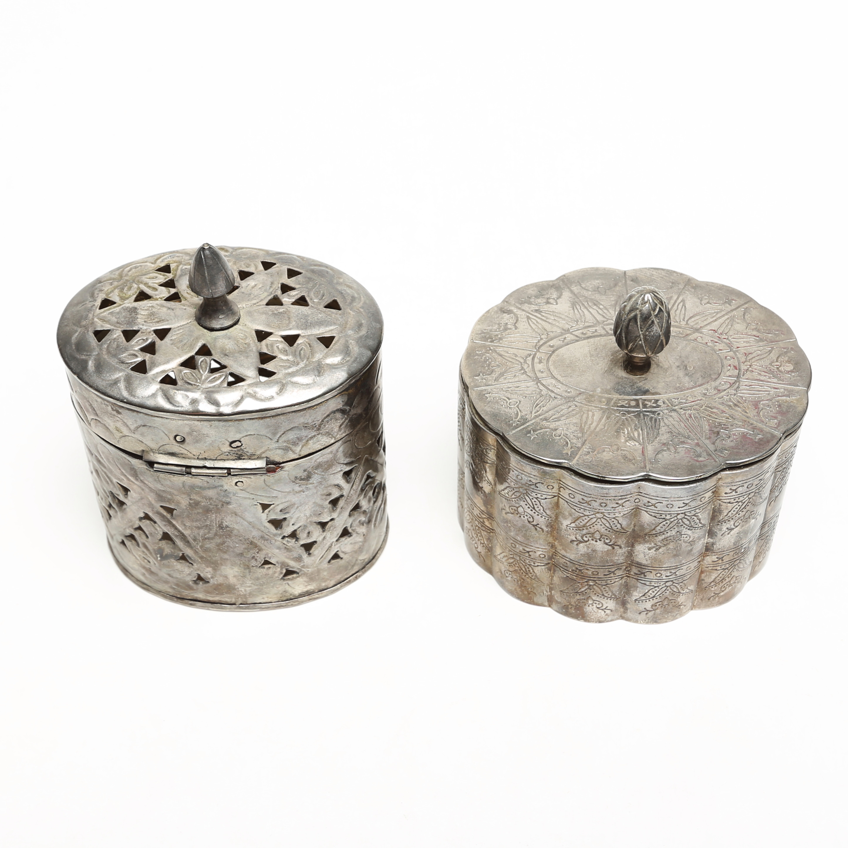 3641655. A set of 2 metal and silver boxes.