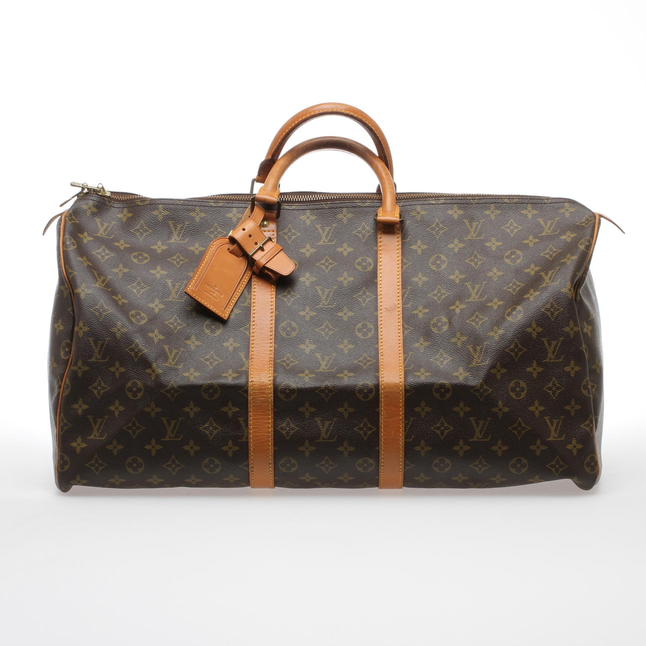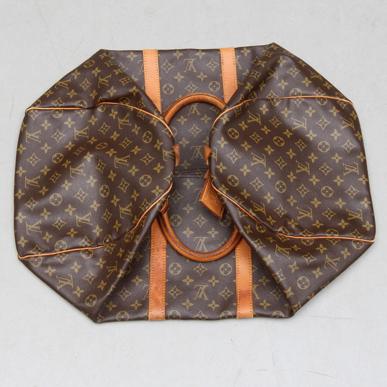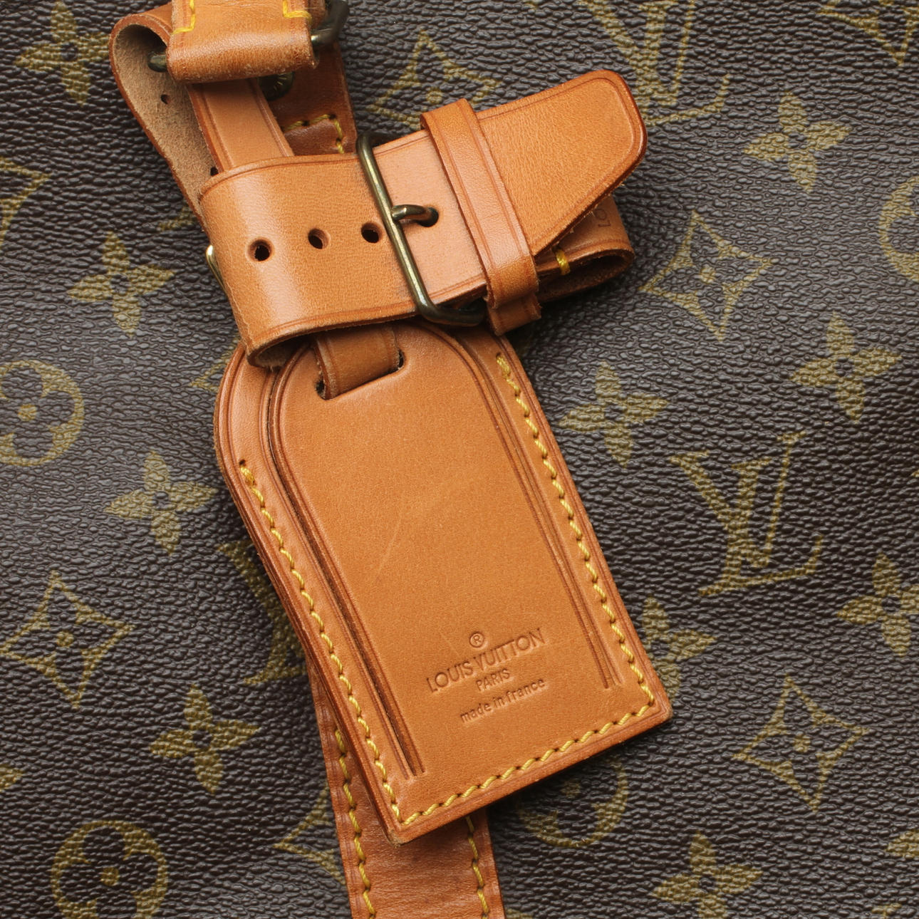 Monogram canvas with details in leather and gold-colored metal. Inside brown canvas. Address label and handle holder. Marked "LOUIS VUITTON PARIS made in france" and inside with date code "MI883". About 55 x 24 x 28 cm.