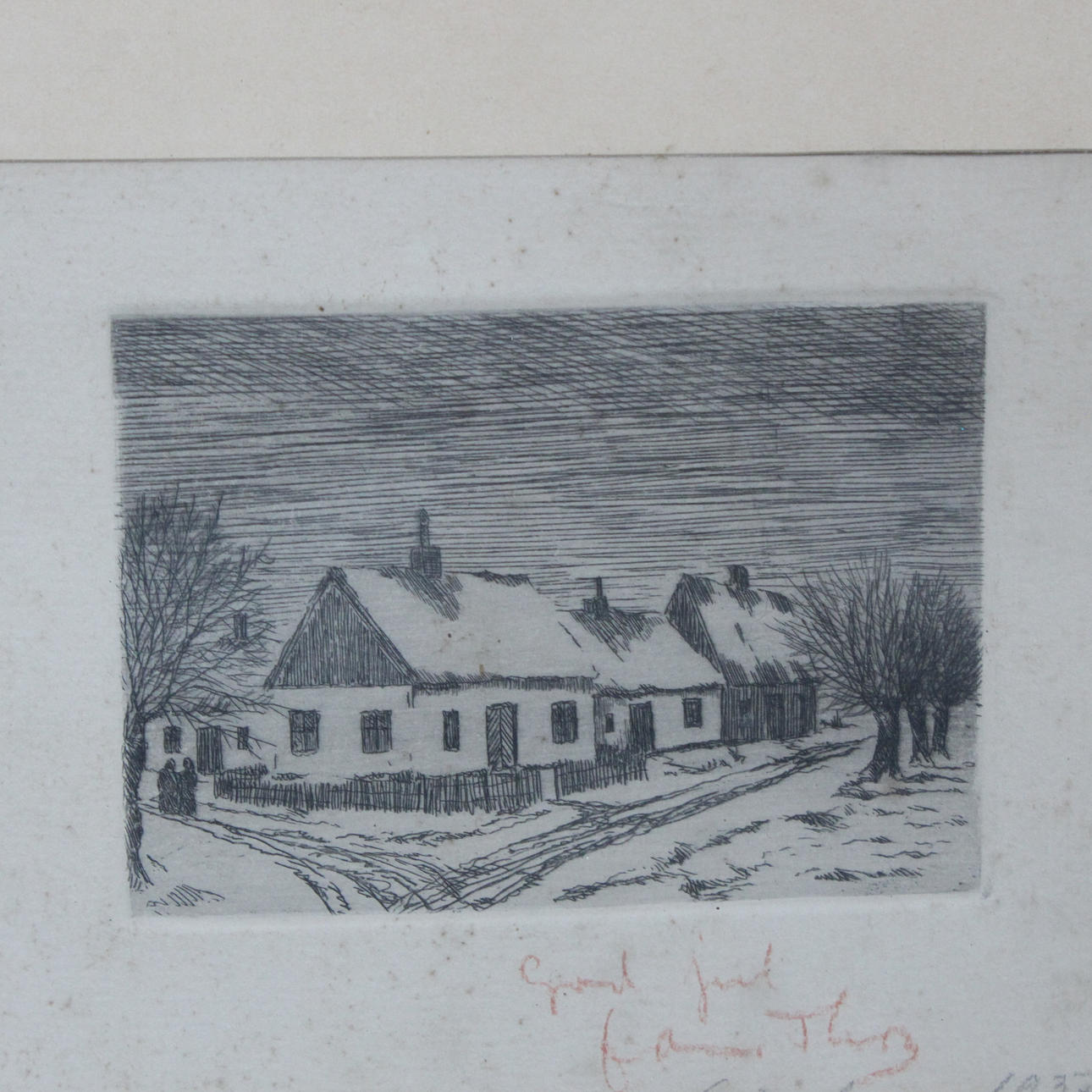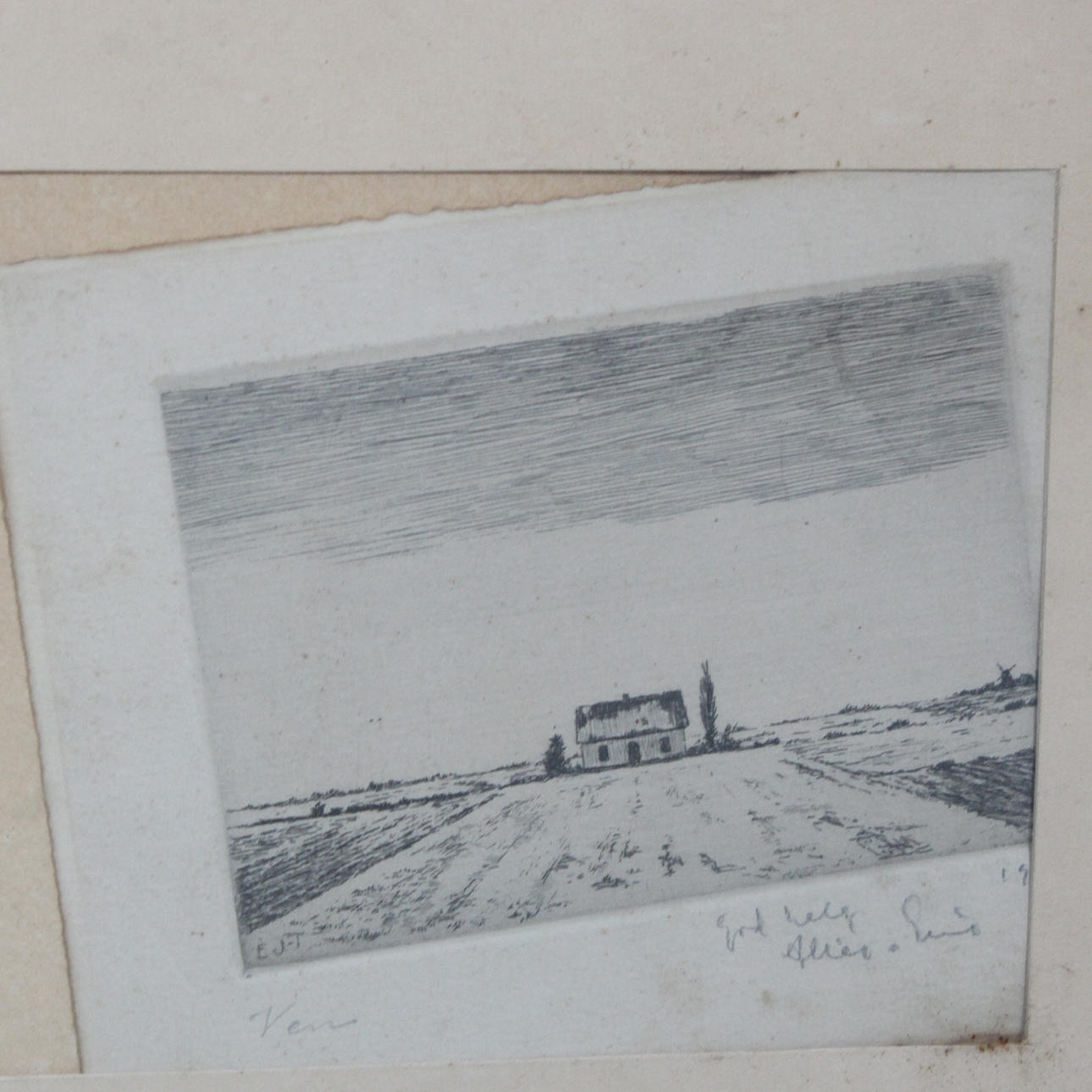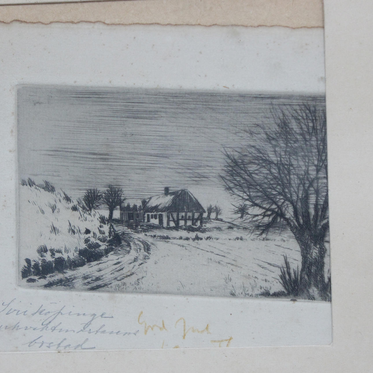 Unknown artist. 'House views', etchings, framed, Each picture size: 11 x 14 cm, Frame size: 22 x 60 cm.