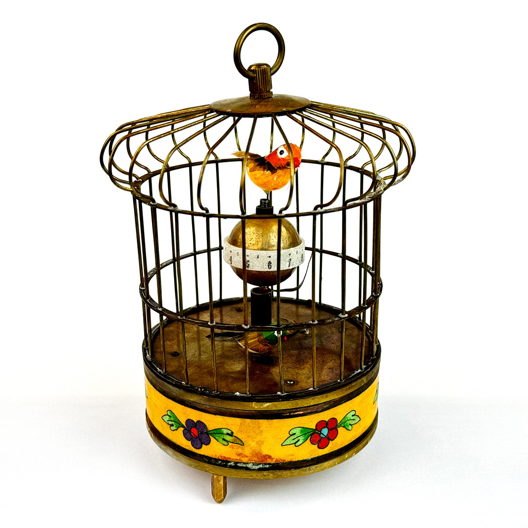 3644369. CHINESE ENAMELLED BIRD CAGE CLOCK.