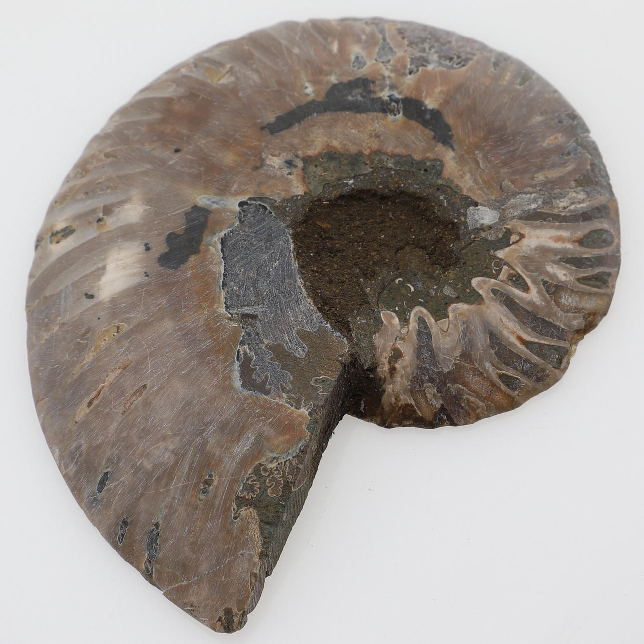 3644934. FOSSIL, ammonite, half, polished inside.