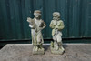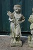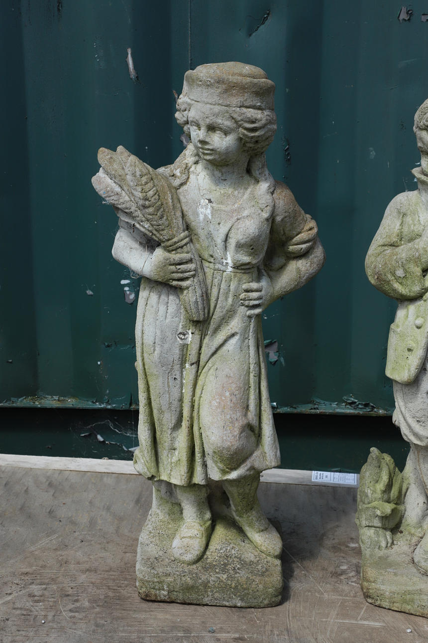 Two male statues in different forms, period dress, with the taller one holding a sheaf of wheat (Height 75cm). (2).