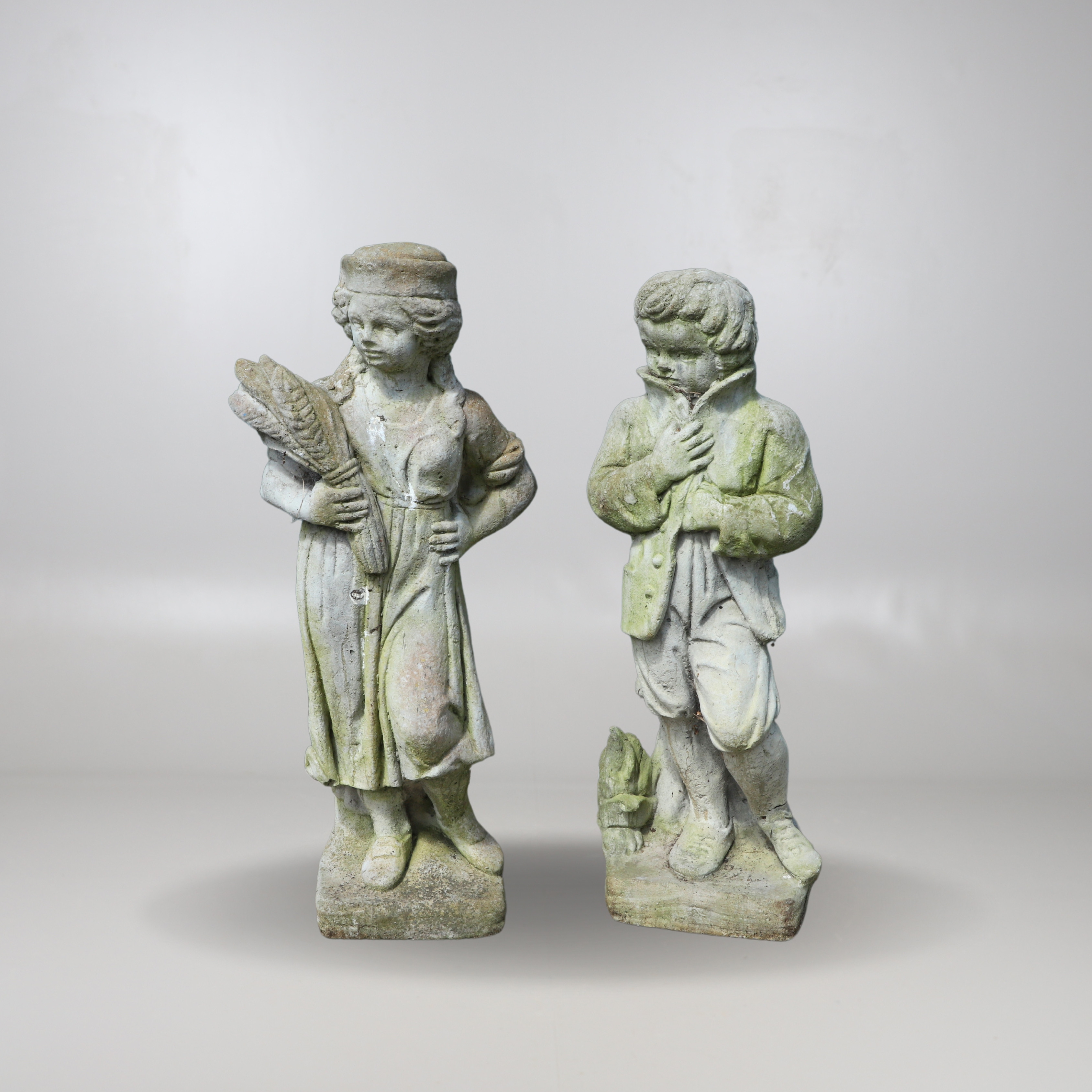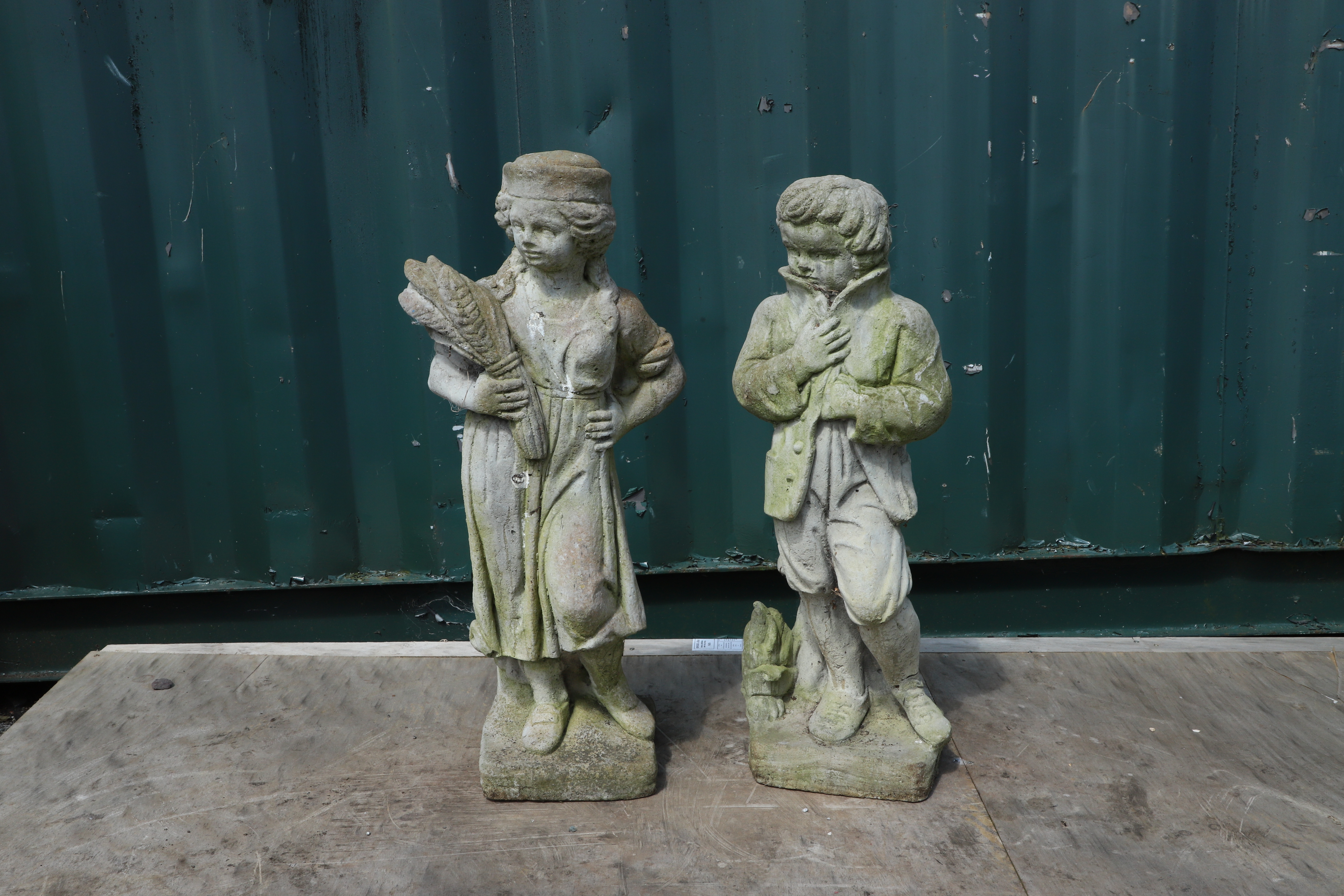 3646833. TWO RECONSTITUTED STONE GARDEN STATUES.