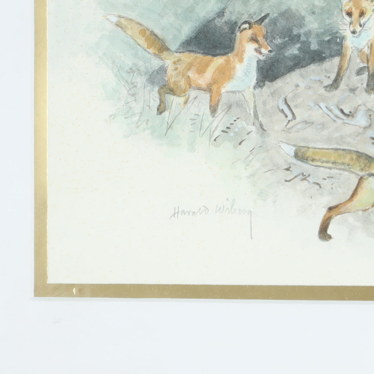 HARALD WIBERG. Watercolor, foxes, signed.