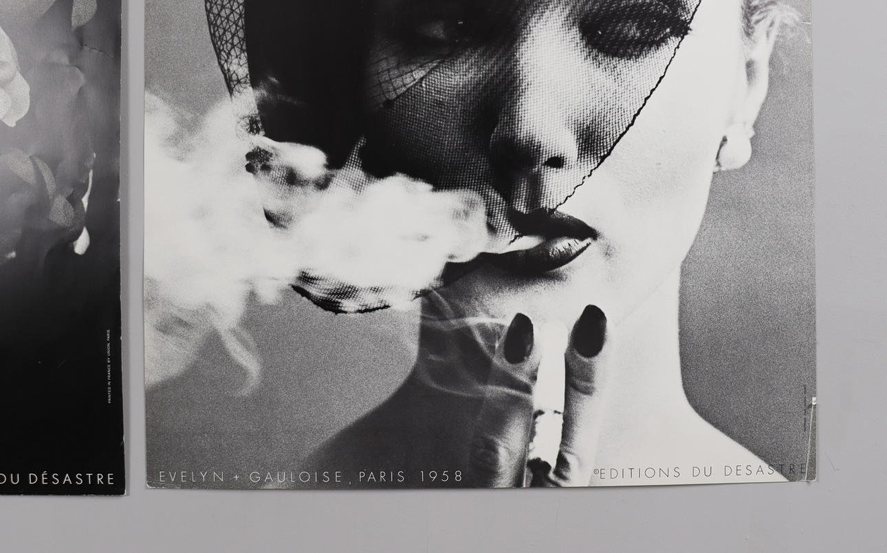 William Klein, 2 posters, 'Editions du disastre', Chapeau + 5 roses Paris 1956, Evelyn + Gauloise Paris 1958, Dimensions approx.: 60x80cm.