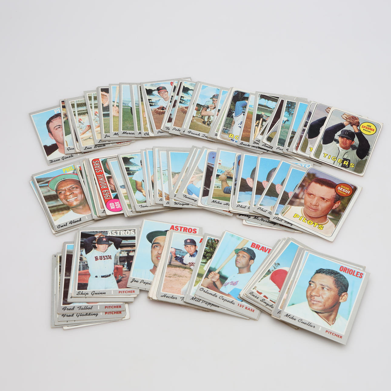 Normal wear and tear, some cards with adhesive residue after tape, many duplicates.