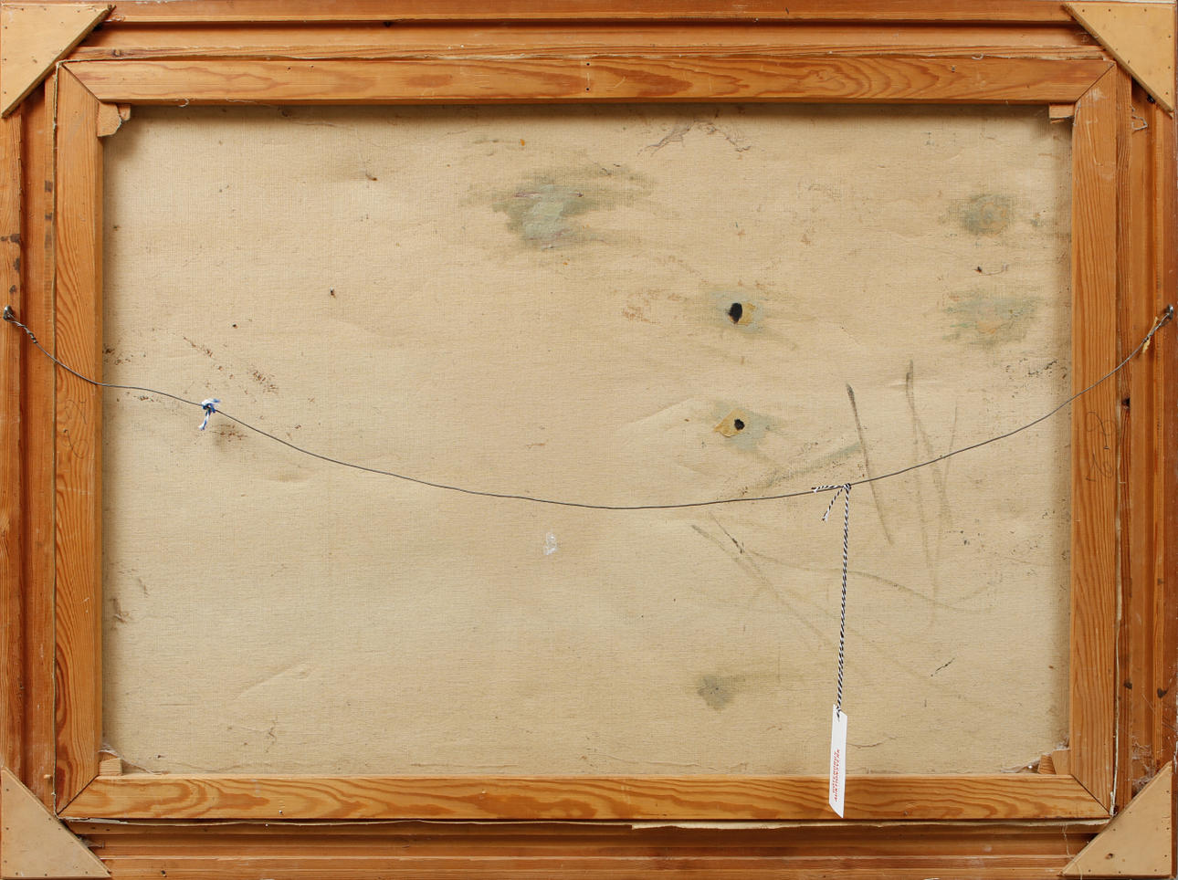 Stains, crackles, color loss, retouching, tearing of the canvas.