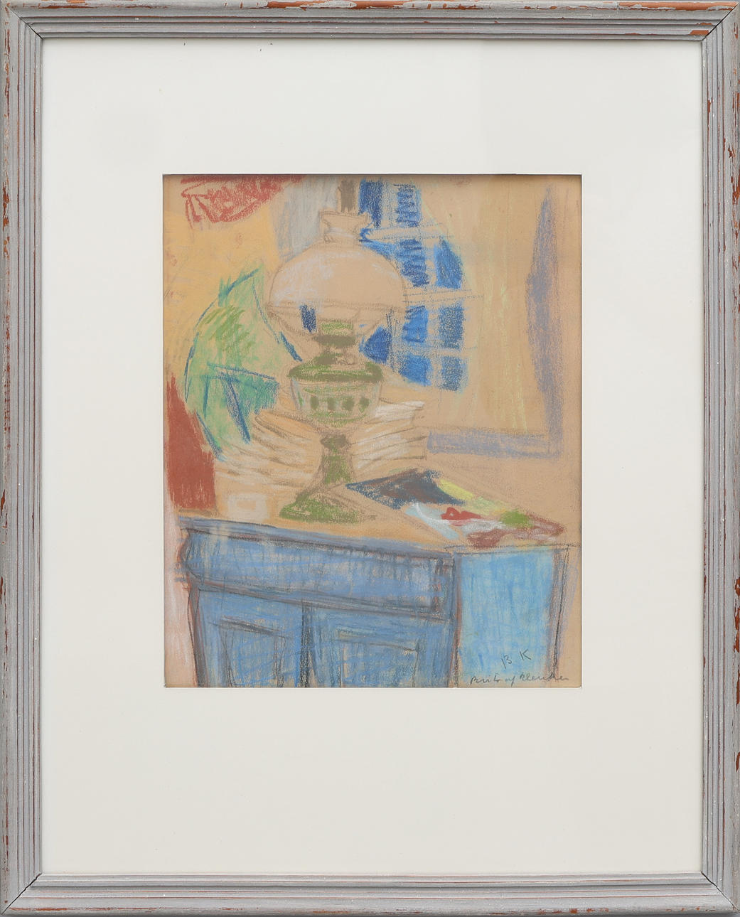 3651586. BRITA AF KLERCKER. PASTEL ON PAPER, ROOM INTERIOR, SIGNED.