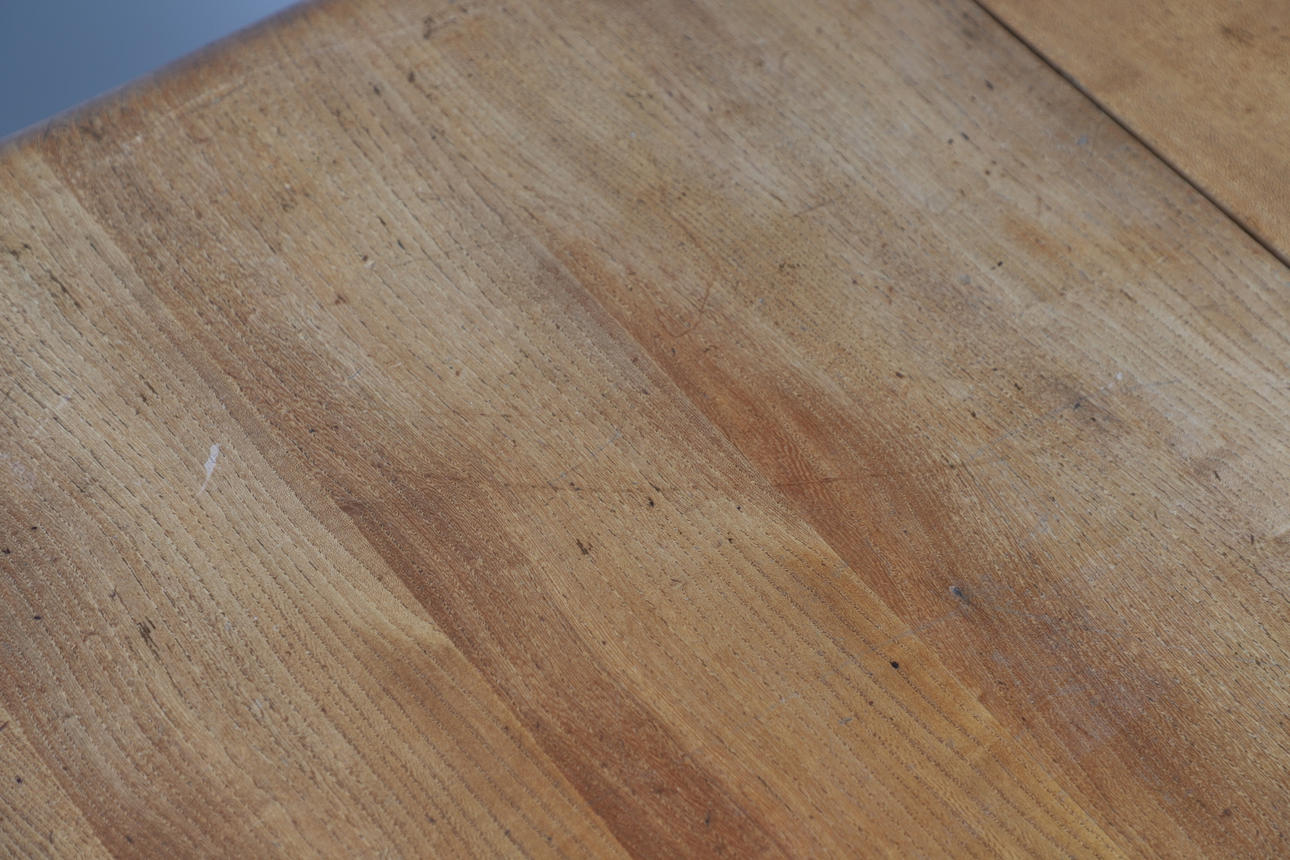 All with wear, the darker extendable attachment is unfortunately split, a slightly different colour and sits just above the table, light scratches, nibbled legs and some discolouration on the whole.