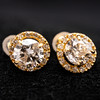 Pair of solitaire earrings made of 750 gold, set with 2 diamonds totalling approx. 2.00 ct together. Color: Light Brown, Clarity: P, with diamonds on the sides totalling ca. 0.26. Total weight approx. 2 grams.
